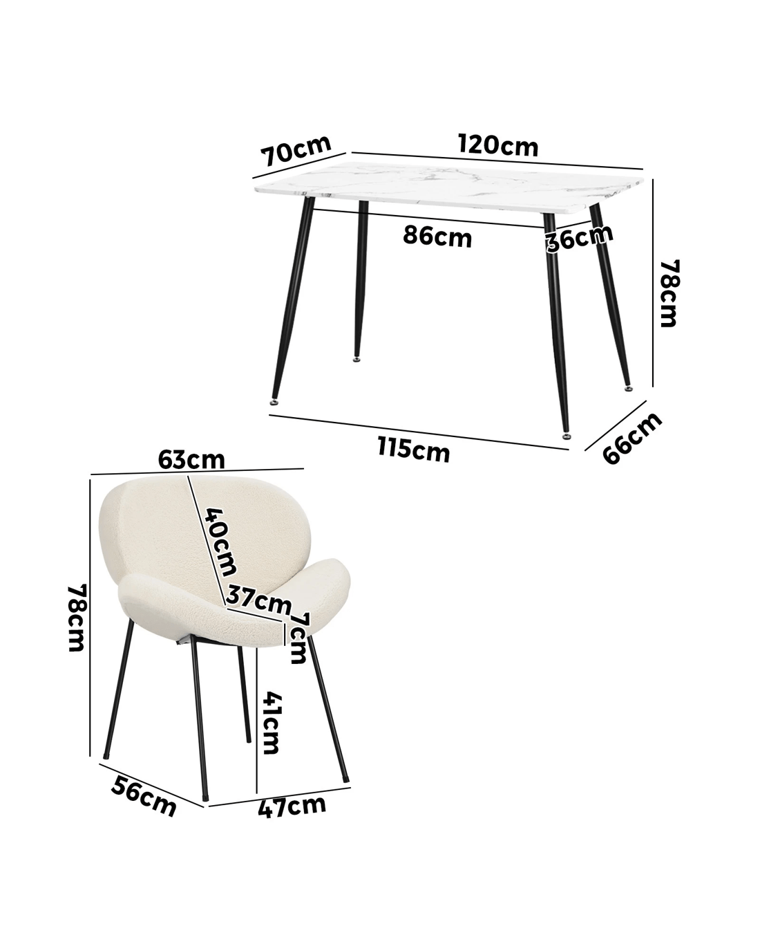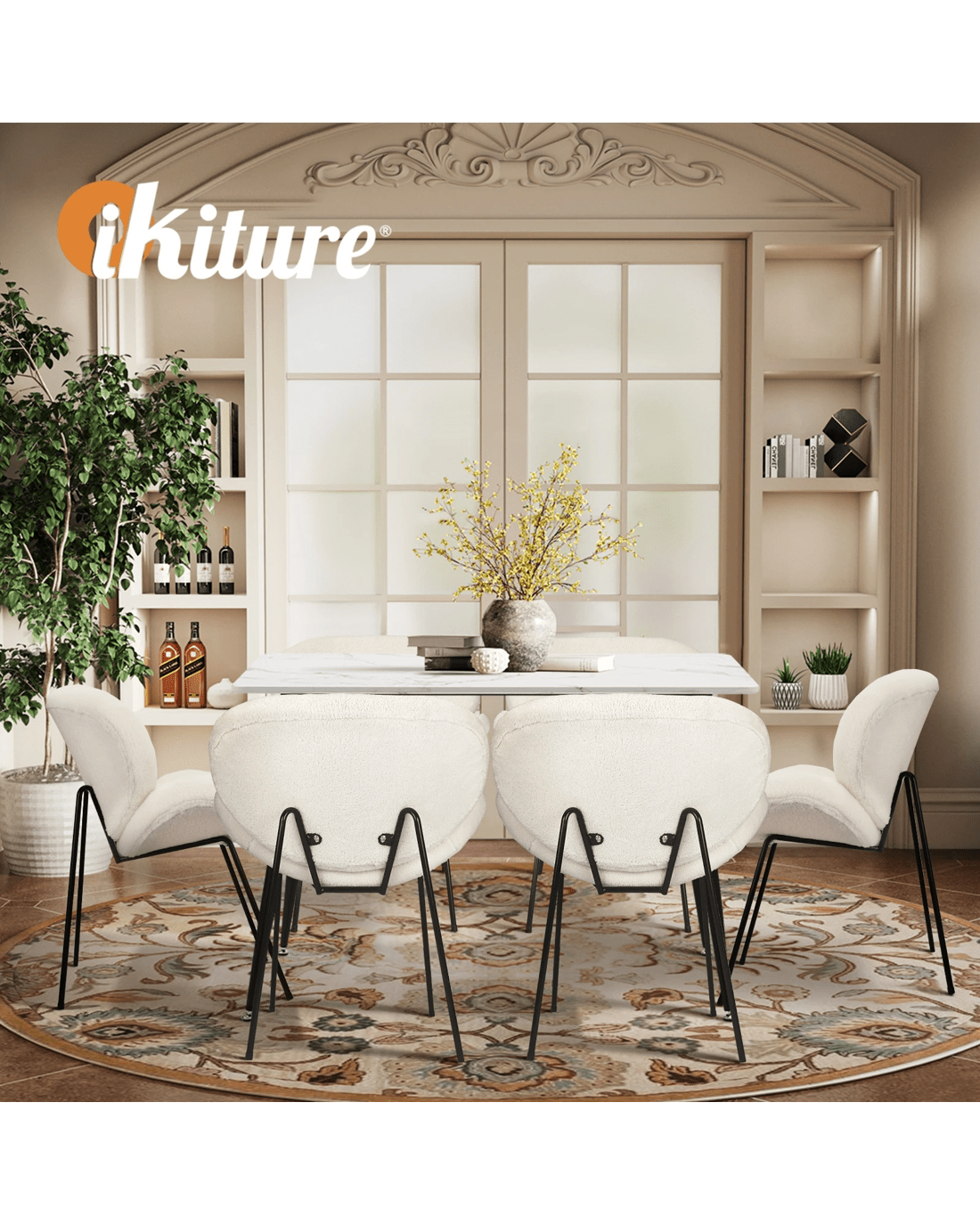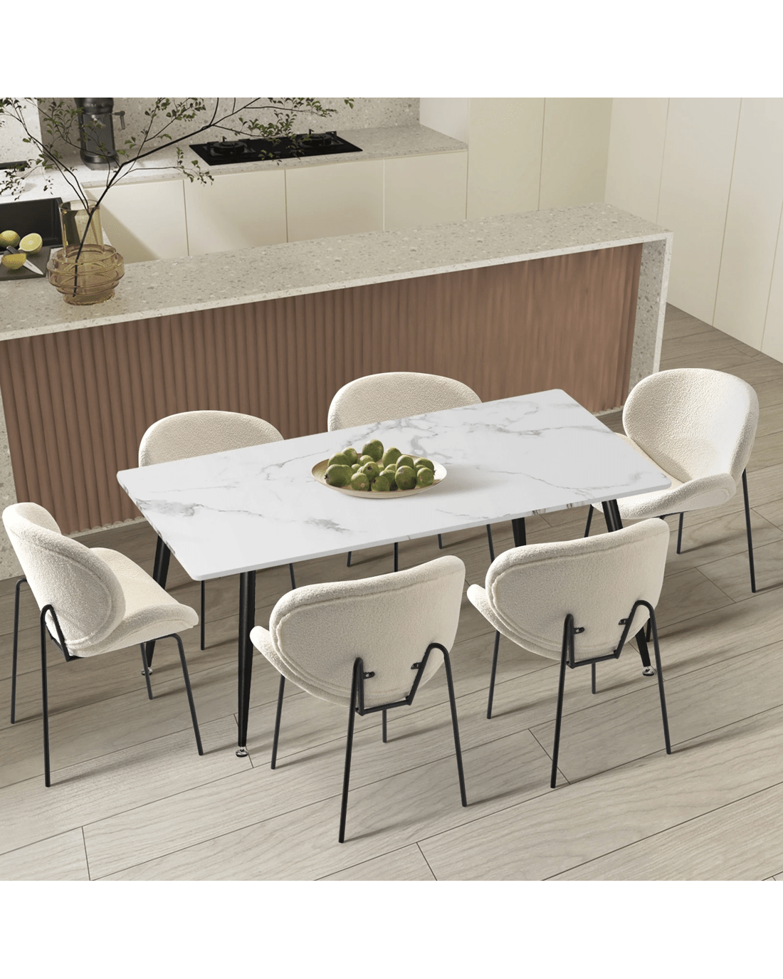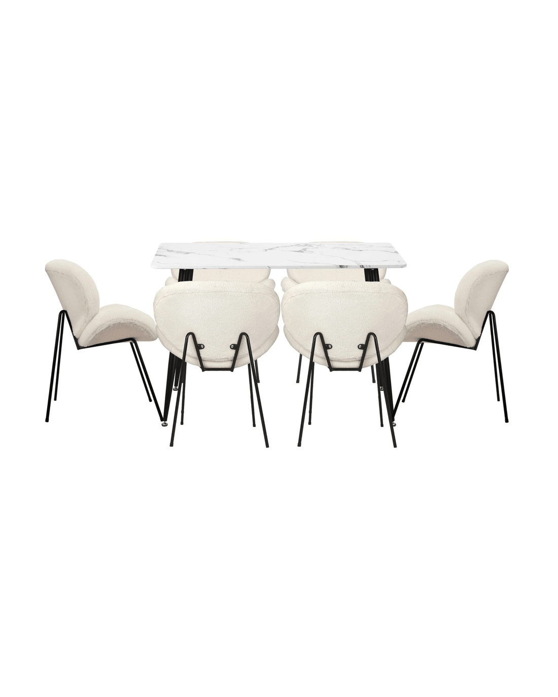 Immerse yourself in the epitome of modern elegance with our Dining Table and Sherpa Dining Chairs Set by Oikiture. The sleek lines of the contemporary dining table set the stage for a dining experience that seamlessly blends sophistication with comfort. Paired with our sumptuous Sherpa Dining Chairs, the set becomes a statement piece that captures attention and admiration.