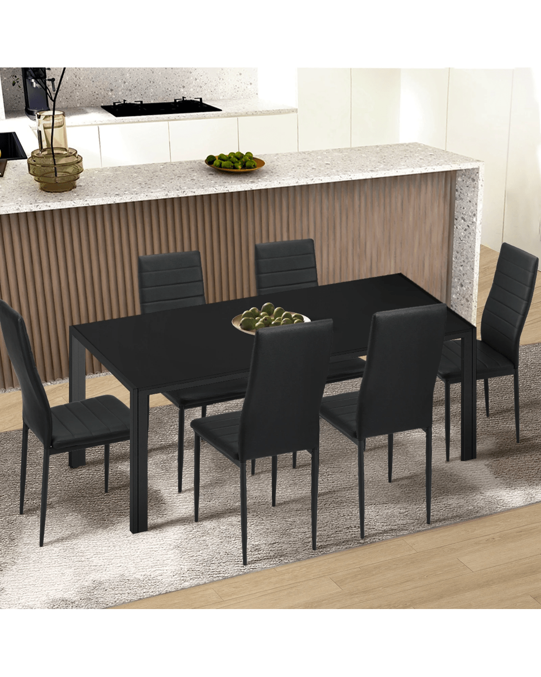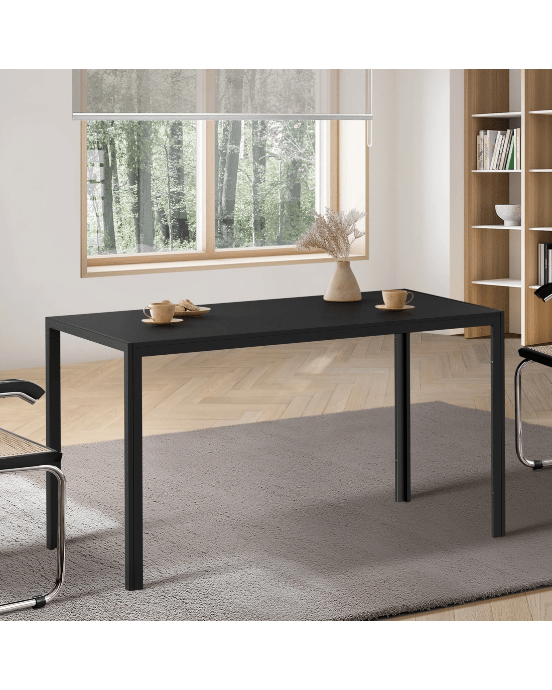 Better still, the particle board dining table comes in a choice of a plain black on black finish with a black frame and legs to suit your dining set-up preference. A 140cm long table is just perfect for small and medium-sized families. It is the ideal size for cozy meals together.