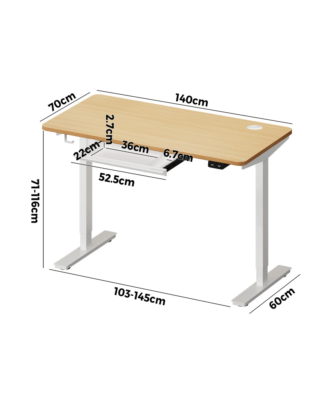 Sold by Kamprad's Oikos 1943Oikiture 140cm Electric Standing Desk With Drawer Height Adjustable - Multi