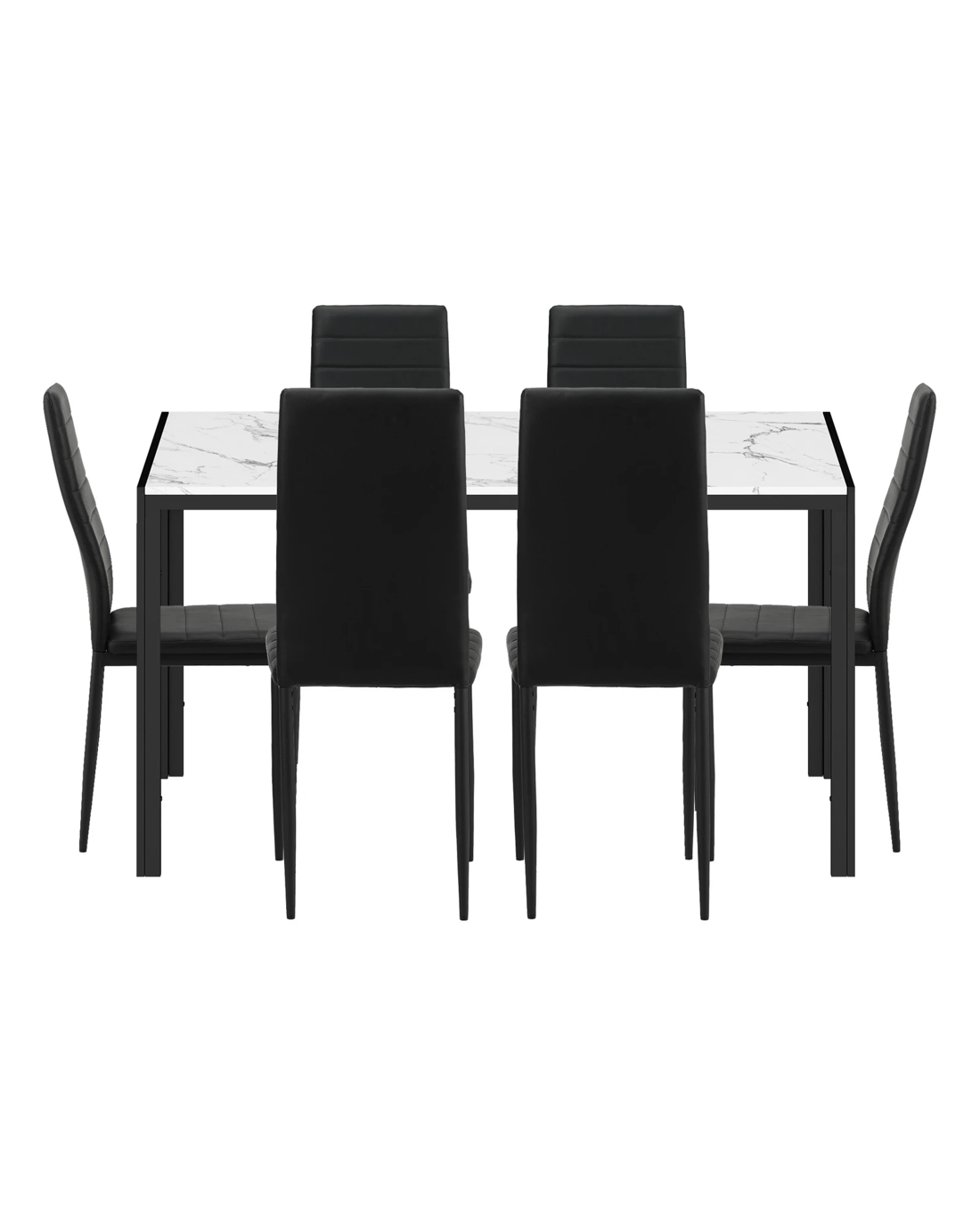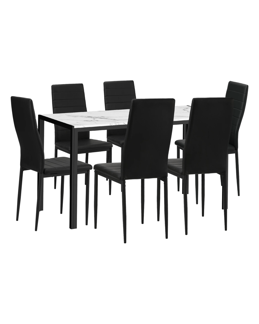 Sold by Kamprad's Oikos 1943Oikiture 140cm Rectangle Dining Table With 6pcs Dining Chairs Marble - Multi