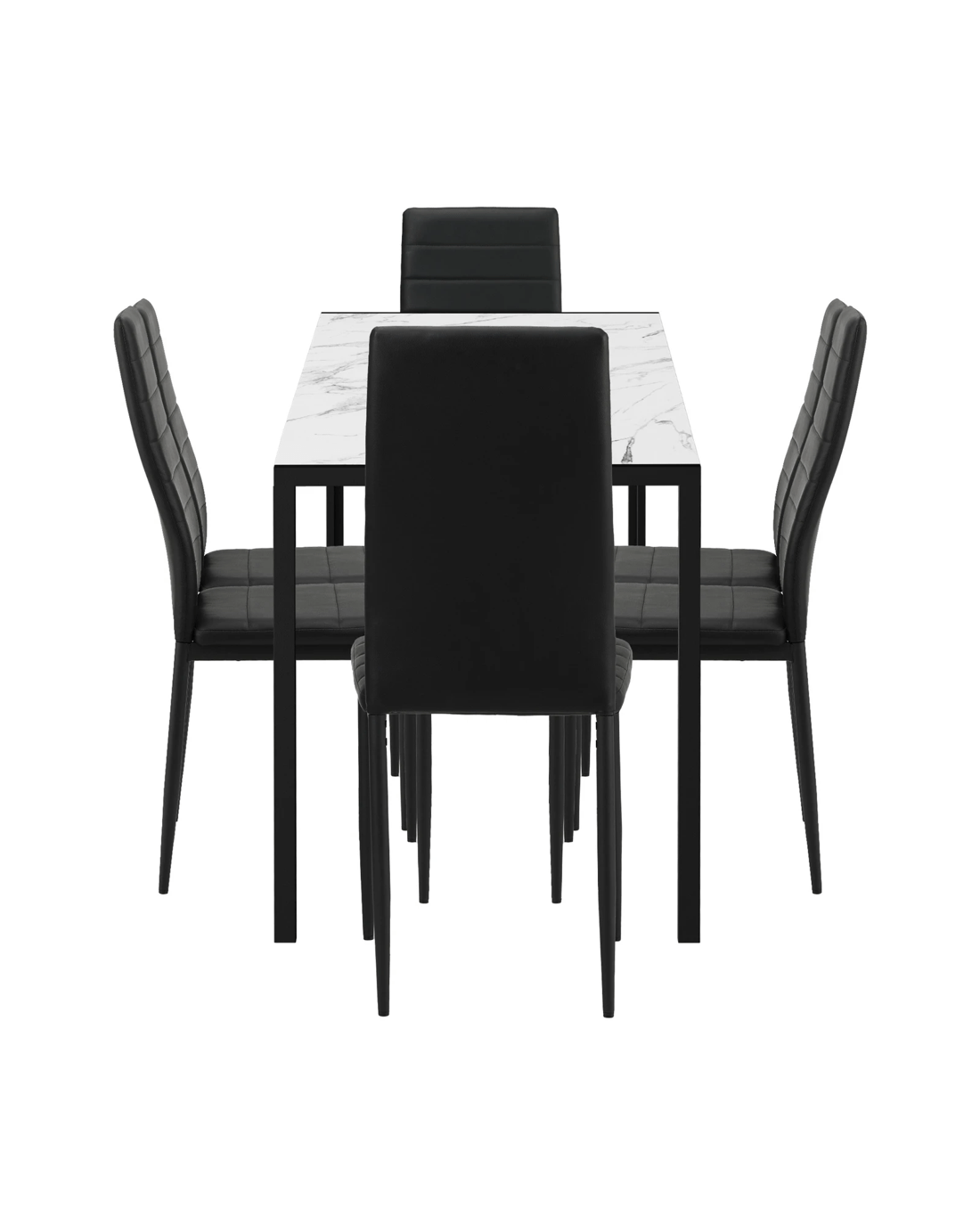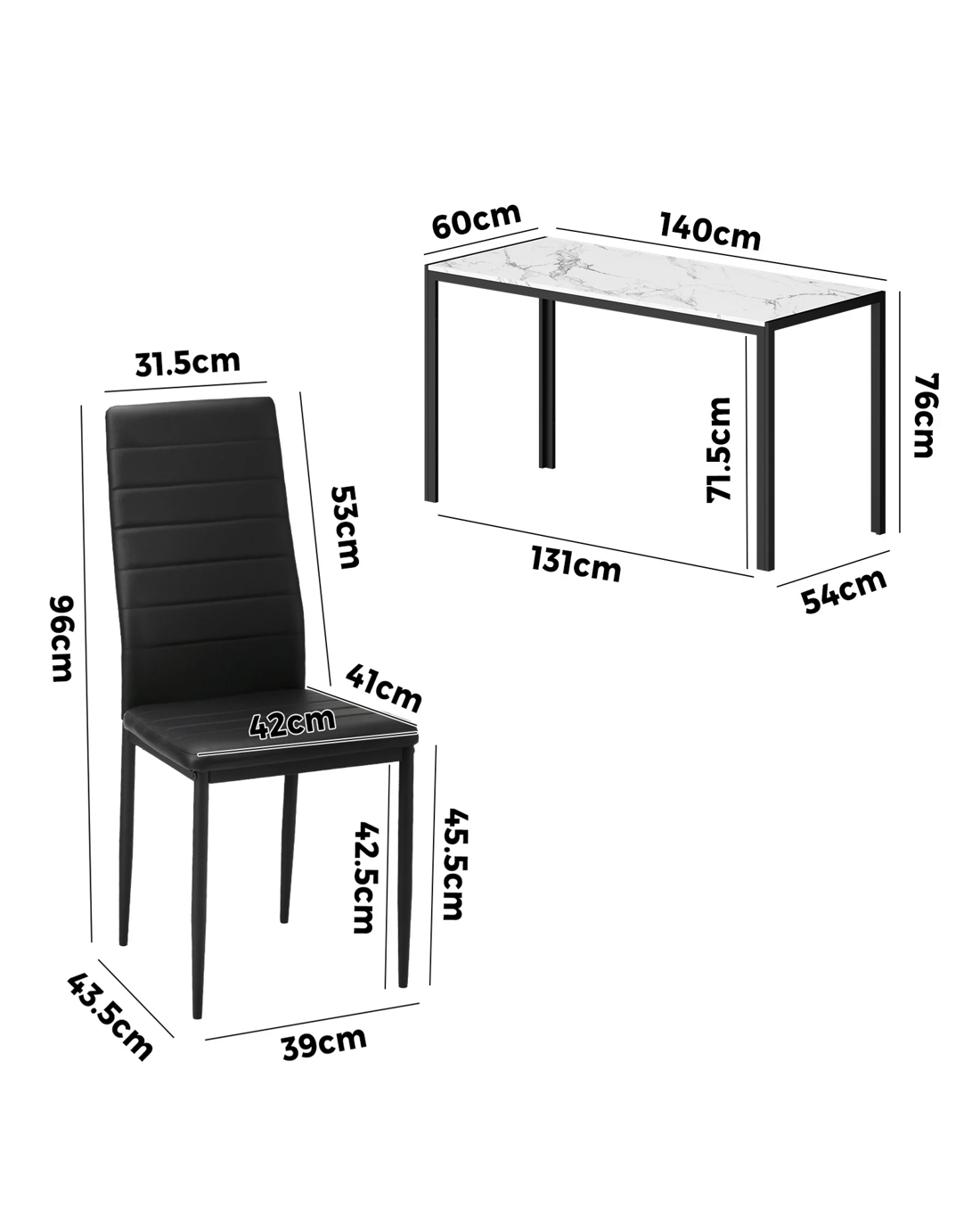 Structure-wise, both the dining chairs and dining table are built to handle high weight capacities with their black powder-coated legs and frames and are also fitted with anti-slip floor protectors to keep your floor free from scratches and damage with any robust use of the dining set.