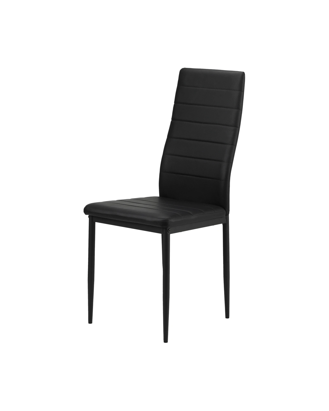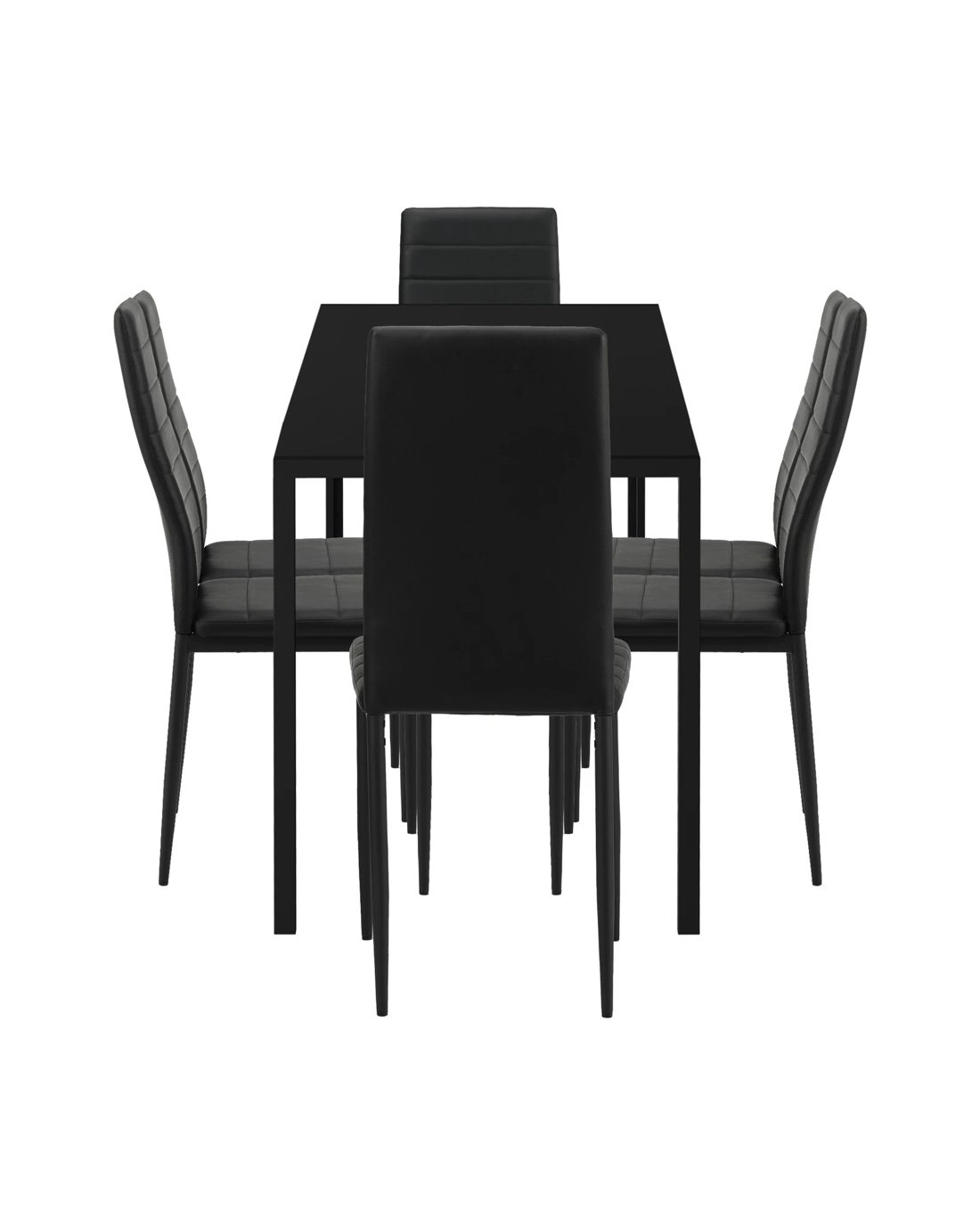 Starting with the dining chair, it comes with a matt-finish faux leather upholstery and features a high backrest and comfortably padded seat that accentuates its tall and sleek profile. Likewise, the contemporary styling of the dining table is designed to complement the dining chairs and provide a perfect symmetry and match up to any decor with minimum hassles.