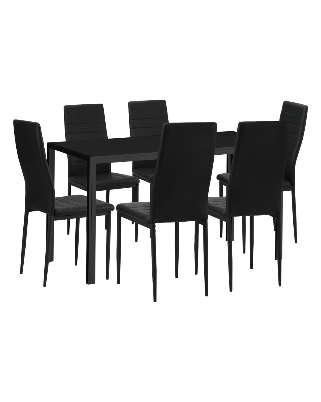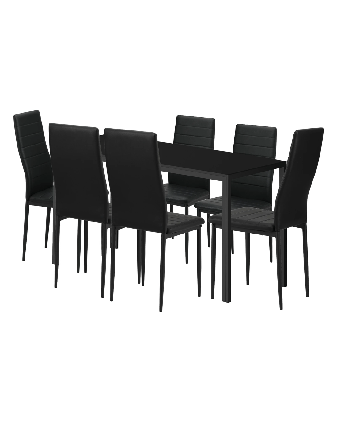 Sold by Kamprad's Oikos 1943Oikiture 140cm Rectangle Dining Table With 6pcs Dining Chairs Wooden - Black