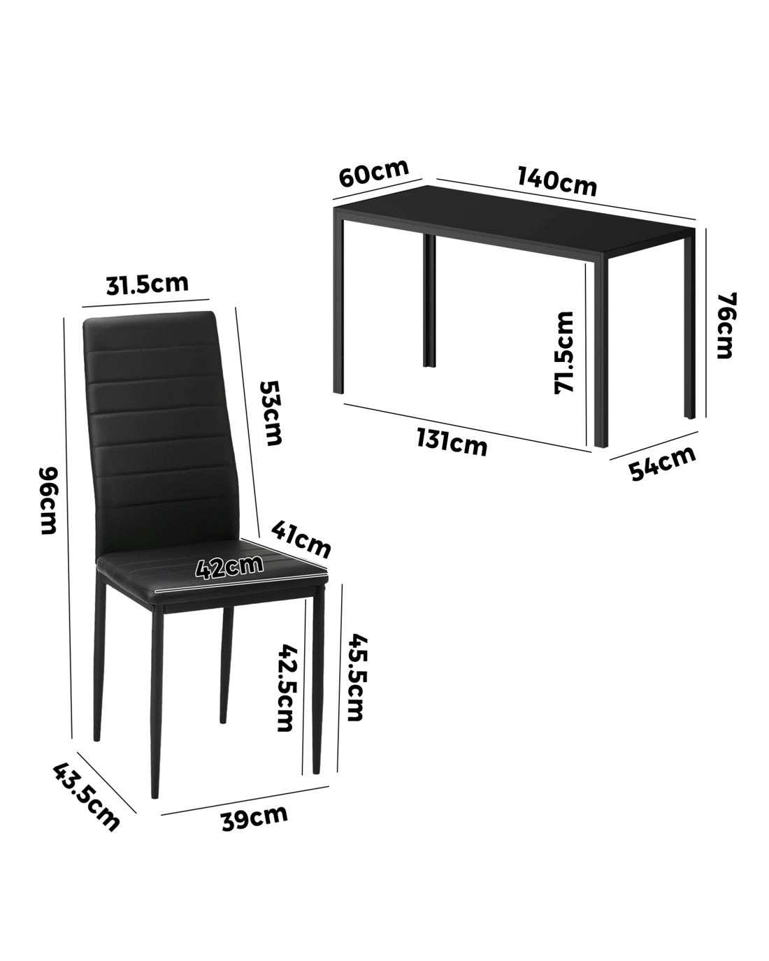 Structure-wise, both the dining chairs and dining table are built to handle high weight capacities with their black powder-coated legs and frames and are also fitted with anti-slip floor protectors to keep your floor free from scratches and damage with any robust use of the dining set.