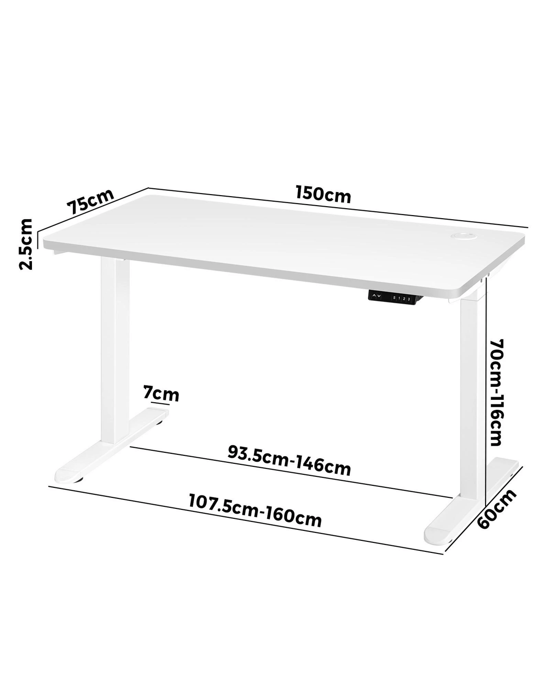 Sold by Kamprad's Oikos 1943Oikiture 150cm Electric Standing Desk Dual Motor - White