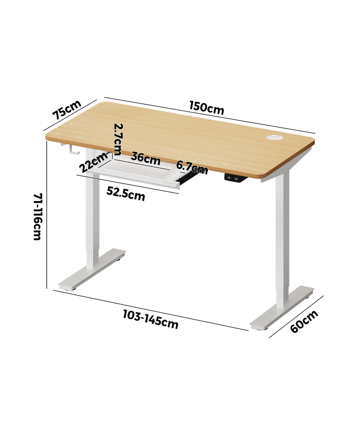 Sold by Kamprad's Oikos 1943Oikiture 150cm Electric Standing Desk With Drawer Height Adjustable - Multi