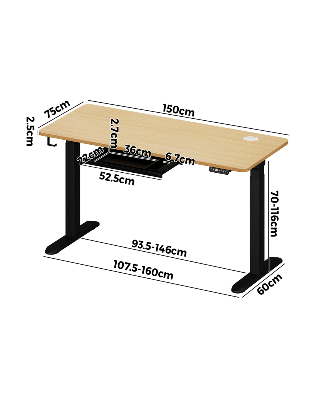 Sold by Kamprad's Oikos 1943Oikiture 150cm Electric Standing Desk With Drawer Height Adjustable - Multi