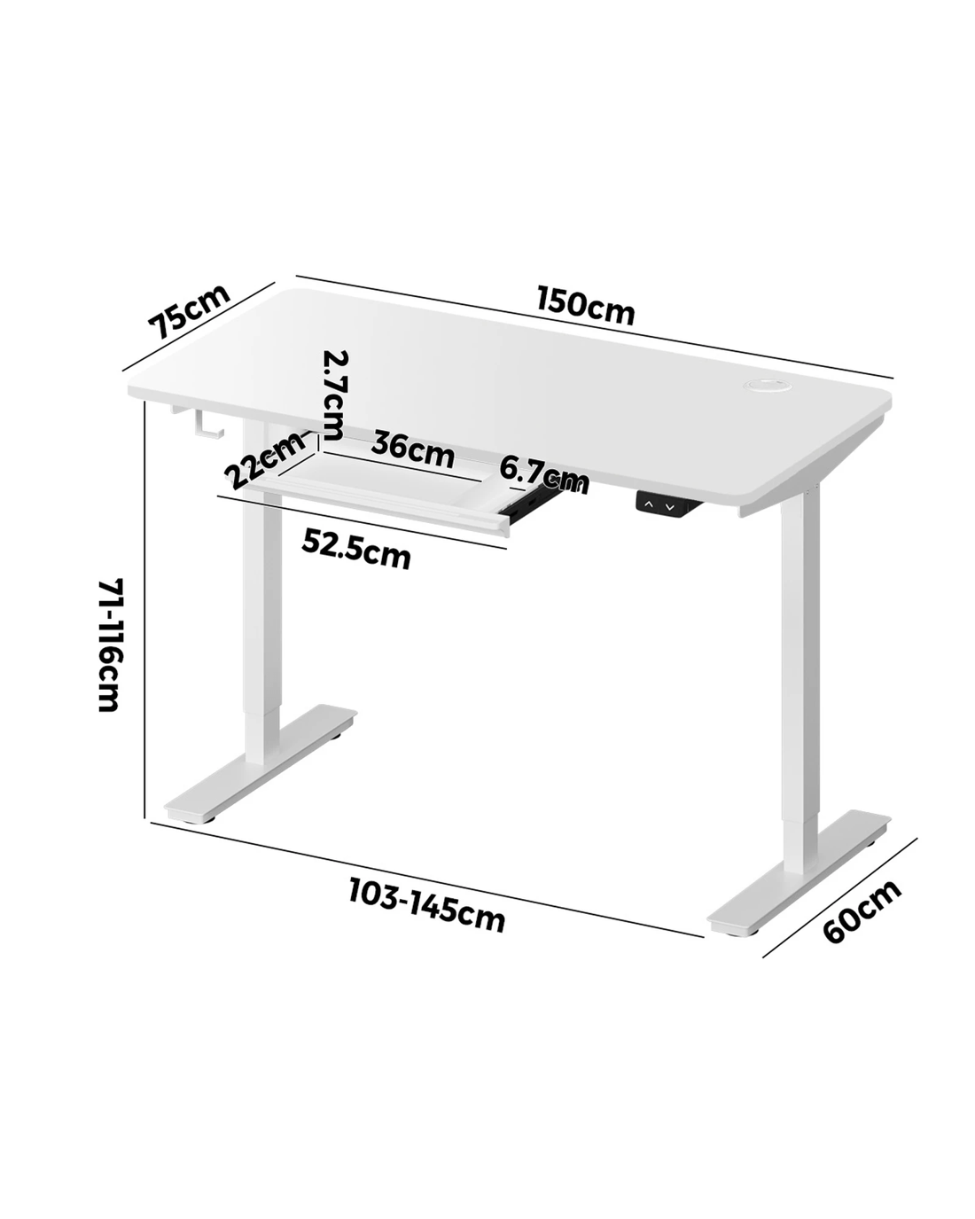 Sold by Kamprad's Oikos 1943Oikiture 150cm Electric Standing Desk With Drawer Height Adjustable - White