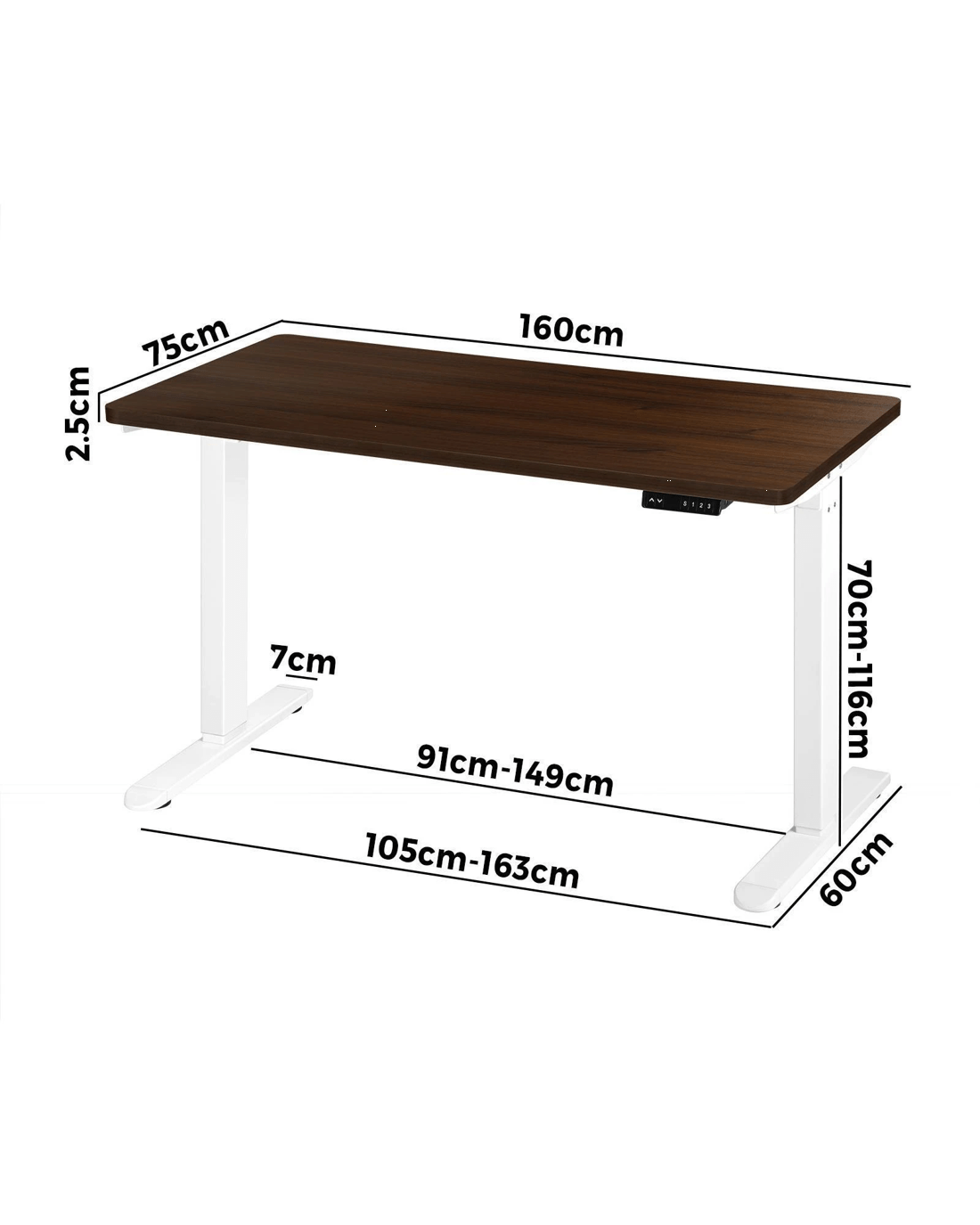 Oikiture 160cm Electric Standing Desk Single Motor Height Adjustable Motorised Sit Stand Desk Rise - White