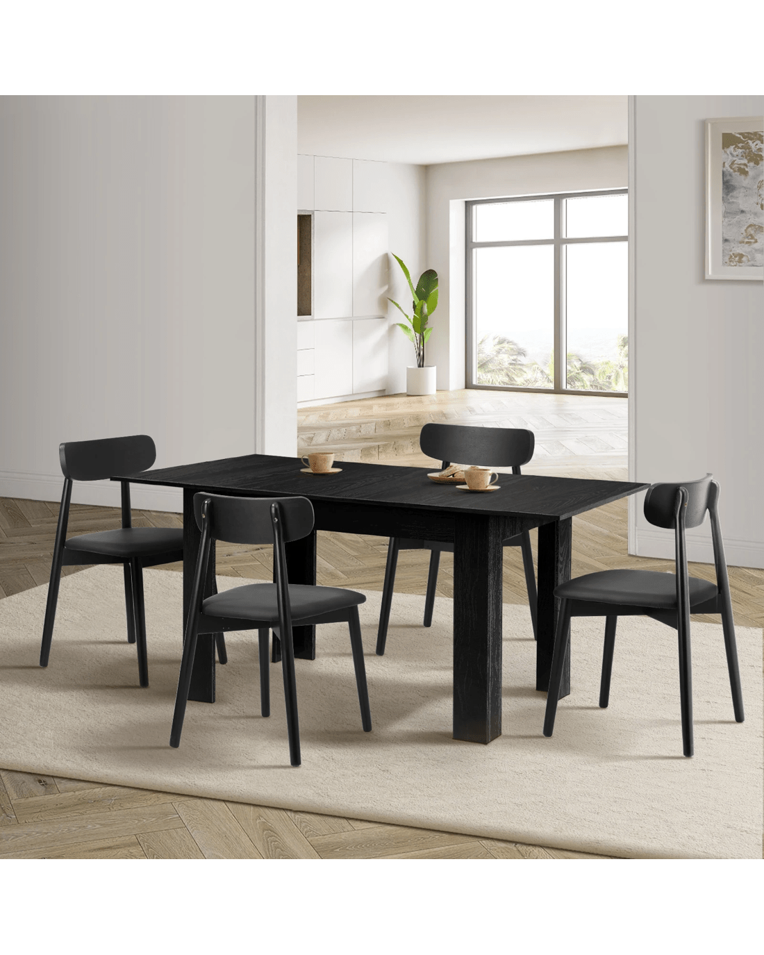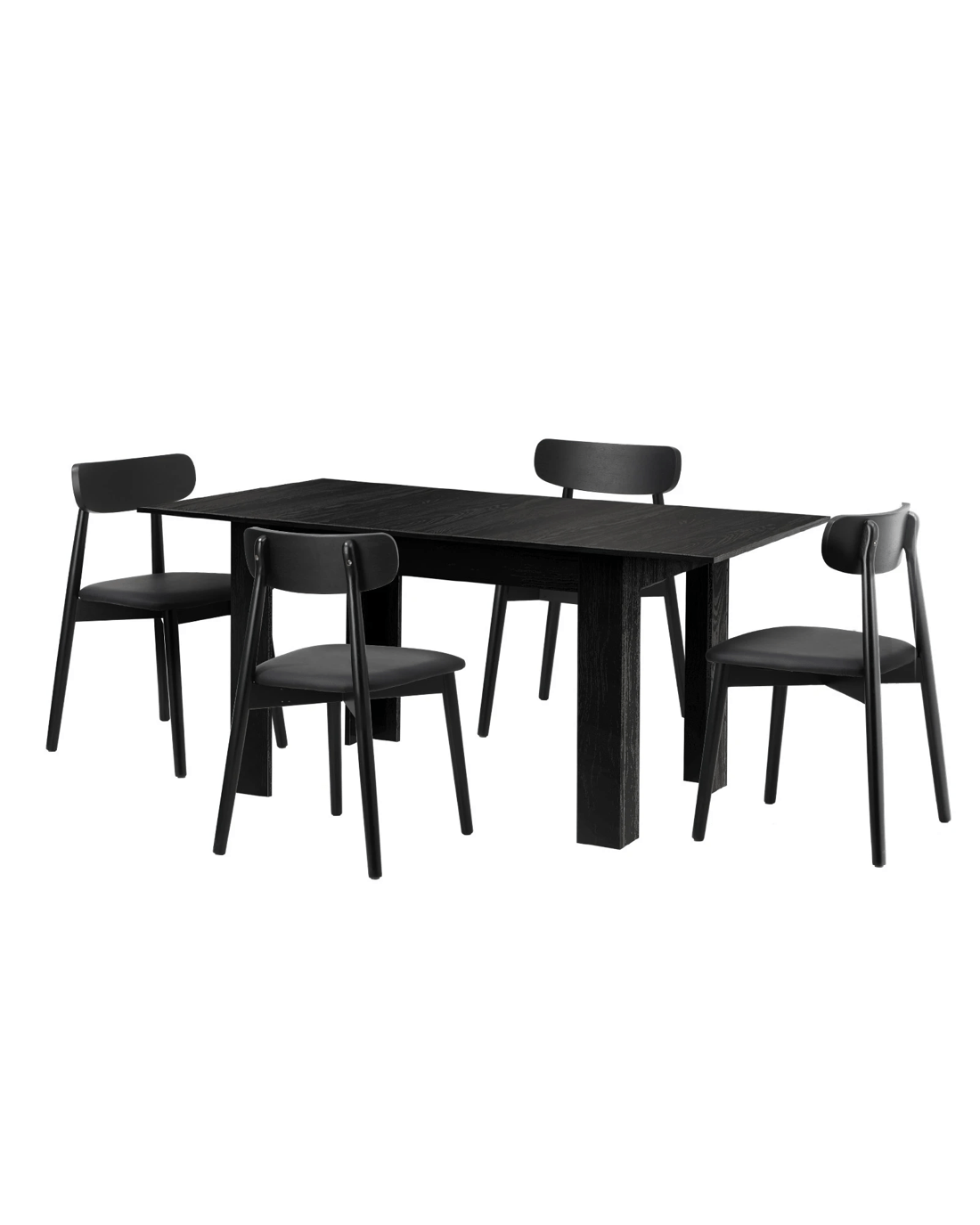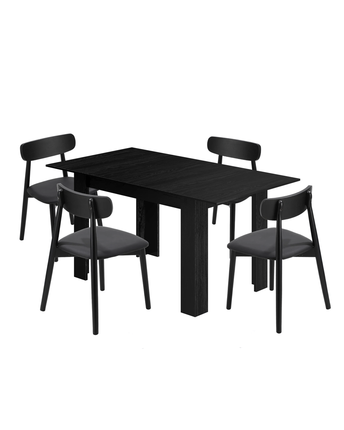 Sold by Kamprad's Oikos 1943Oikiture 160cm Extendable Dining Table with 4x Dining Chairs PU Leather - Black