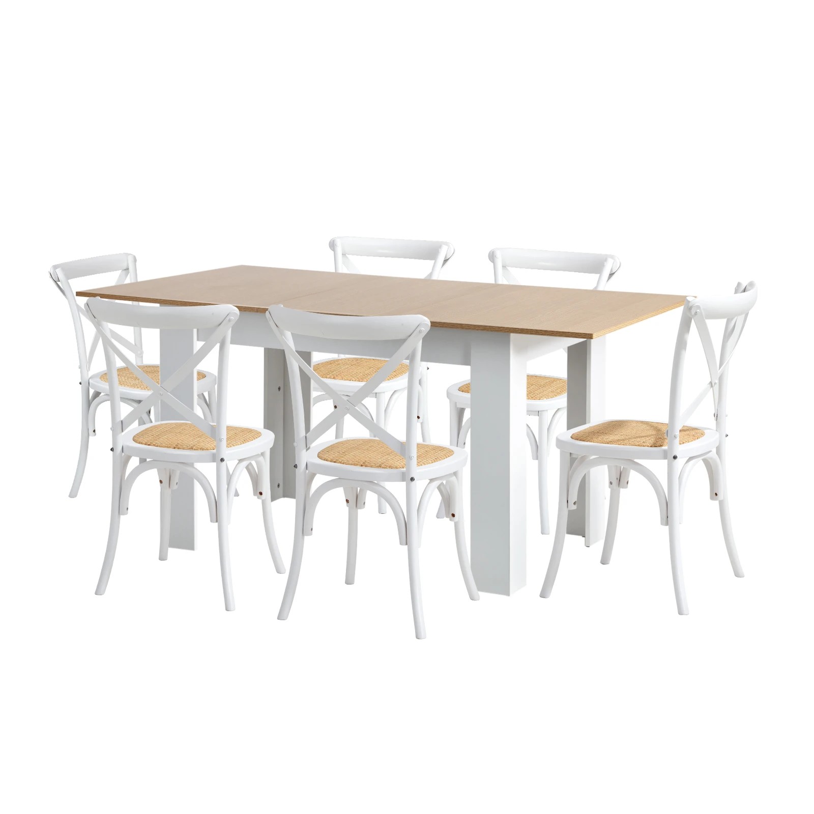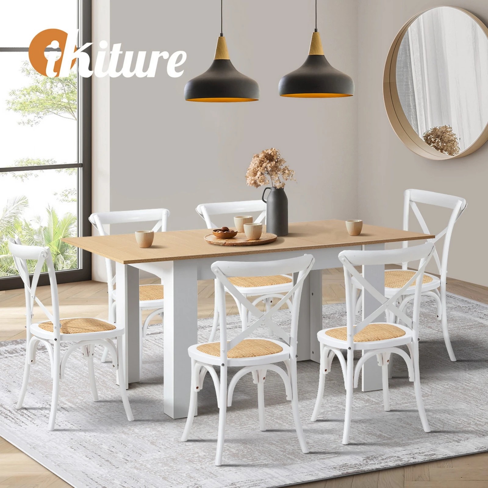 Oikiture 160cm Extendable Dining Table With 6pcs Dining Chairs Crossback - Multi