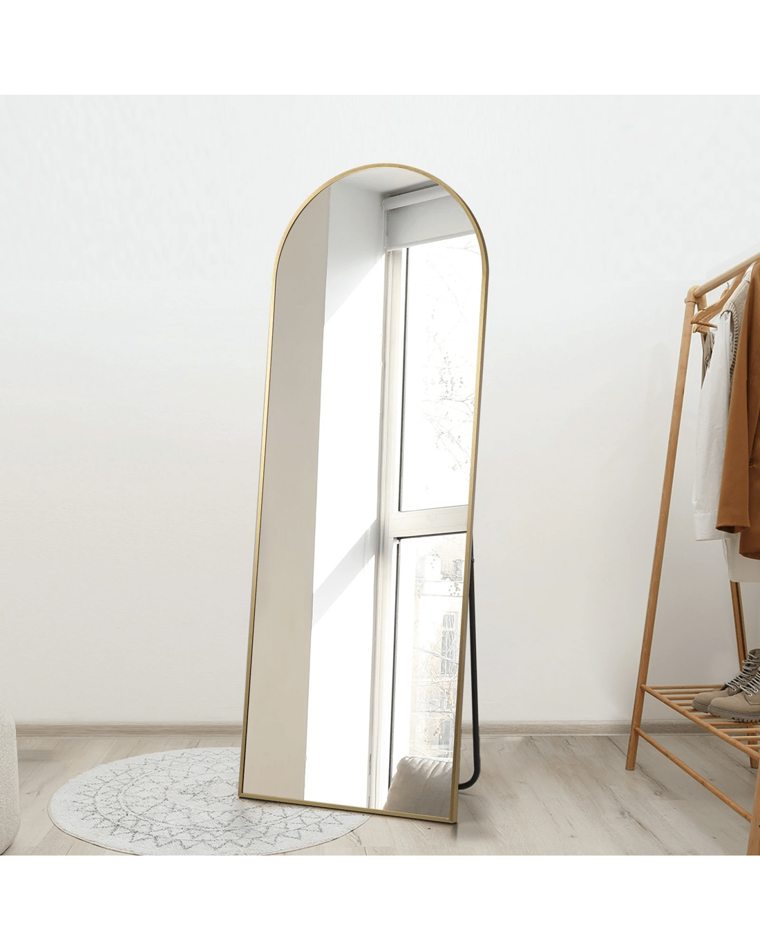 Set it on the floor with the built-in support, or lean it on the wall, our versatile full-length mirror will certainly captivate you with its exceptional presence. The Oikiture Full-Length Mirror is never short on inspiring stunning beauty in its fullest measure.
