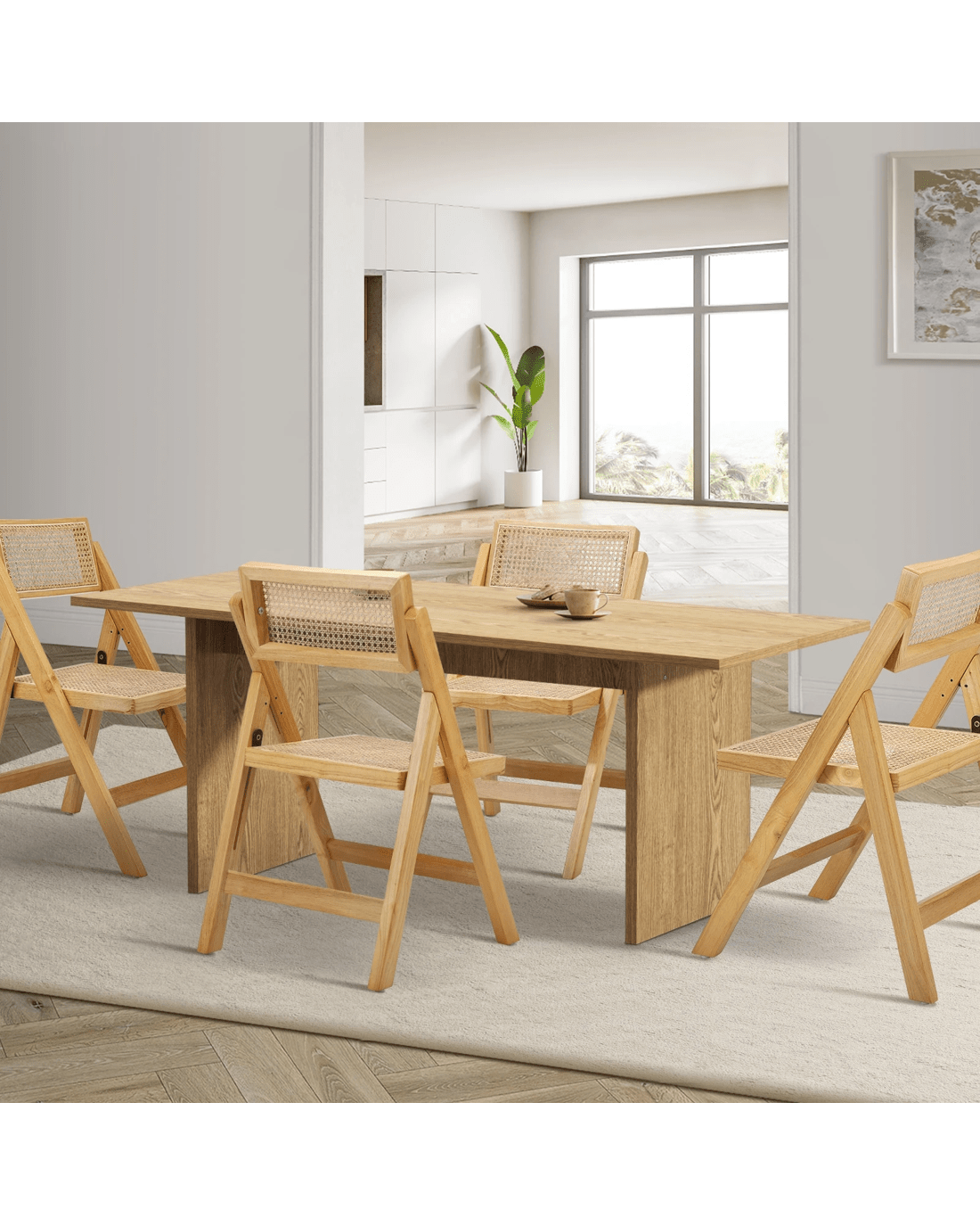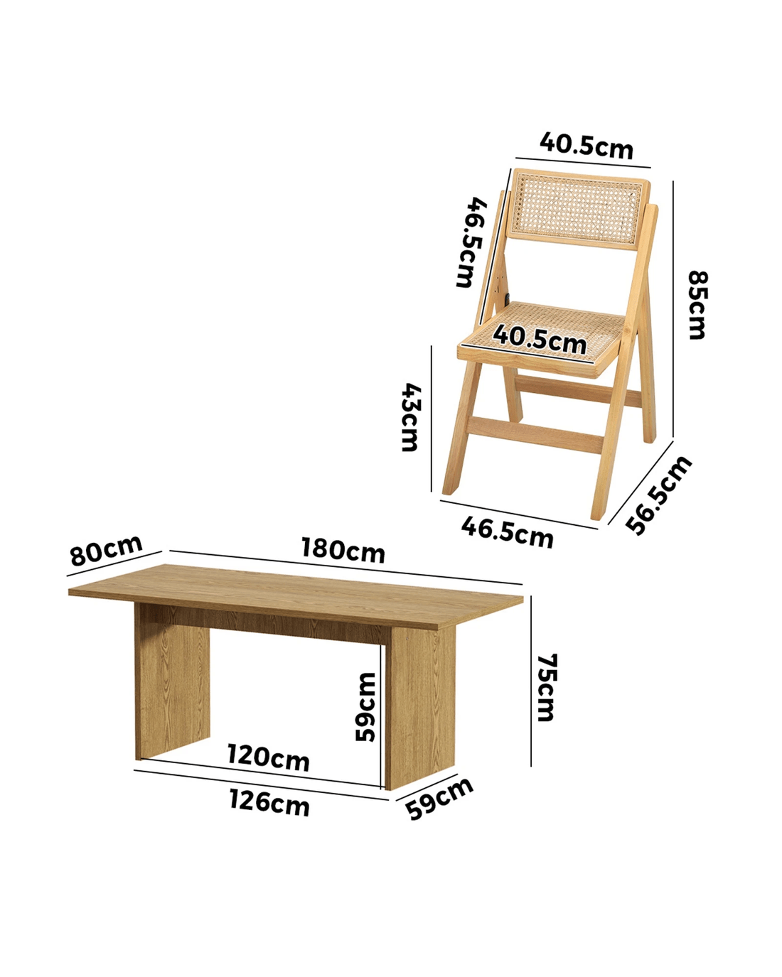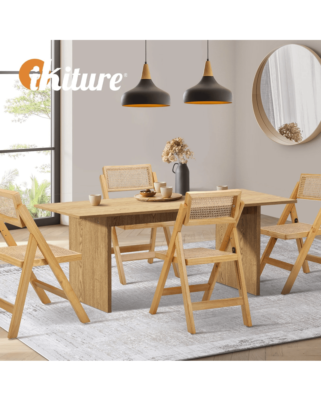 Sold by Kamprad's Oikos 1943Oikiture 180cm Rectangular Dining Table With 4pcs Dining Chairs Foldable - Natural