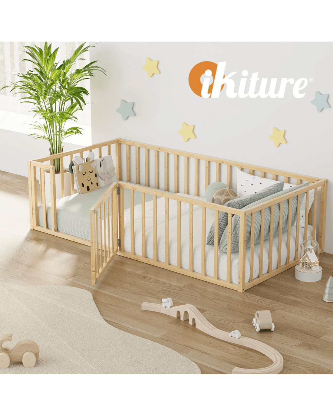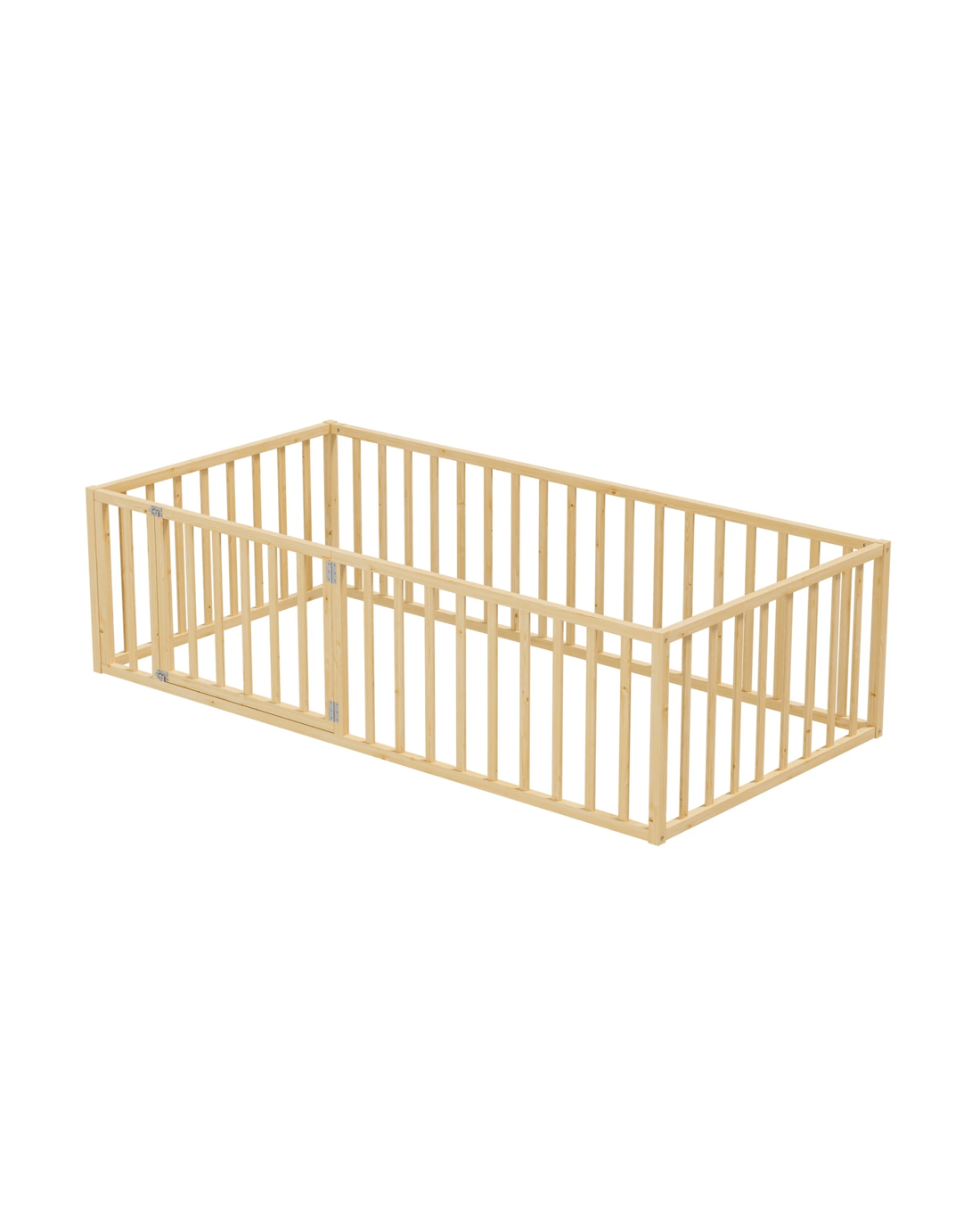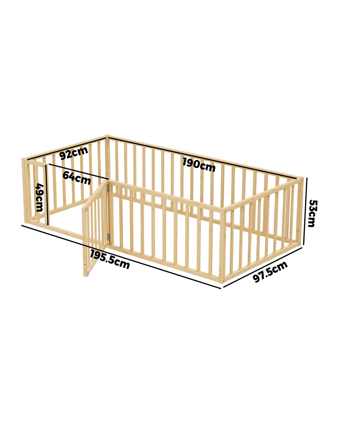 Sold by Kamprad's Oikos 1943Oikiture 2-in-1 Kids Bed Play Centre Fence Gate Single Wood - Natural