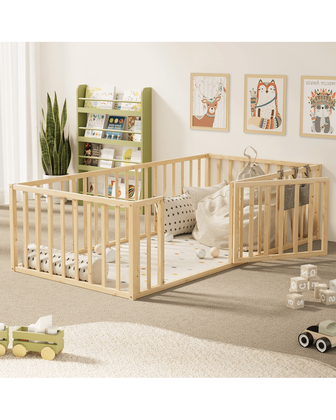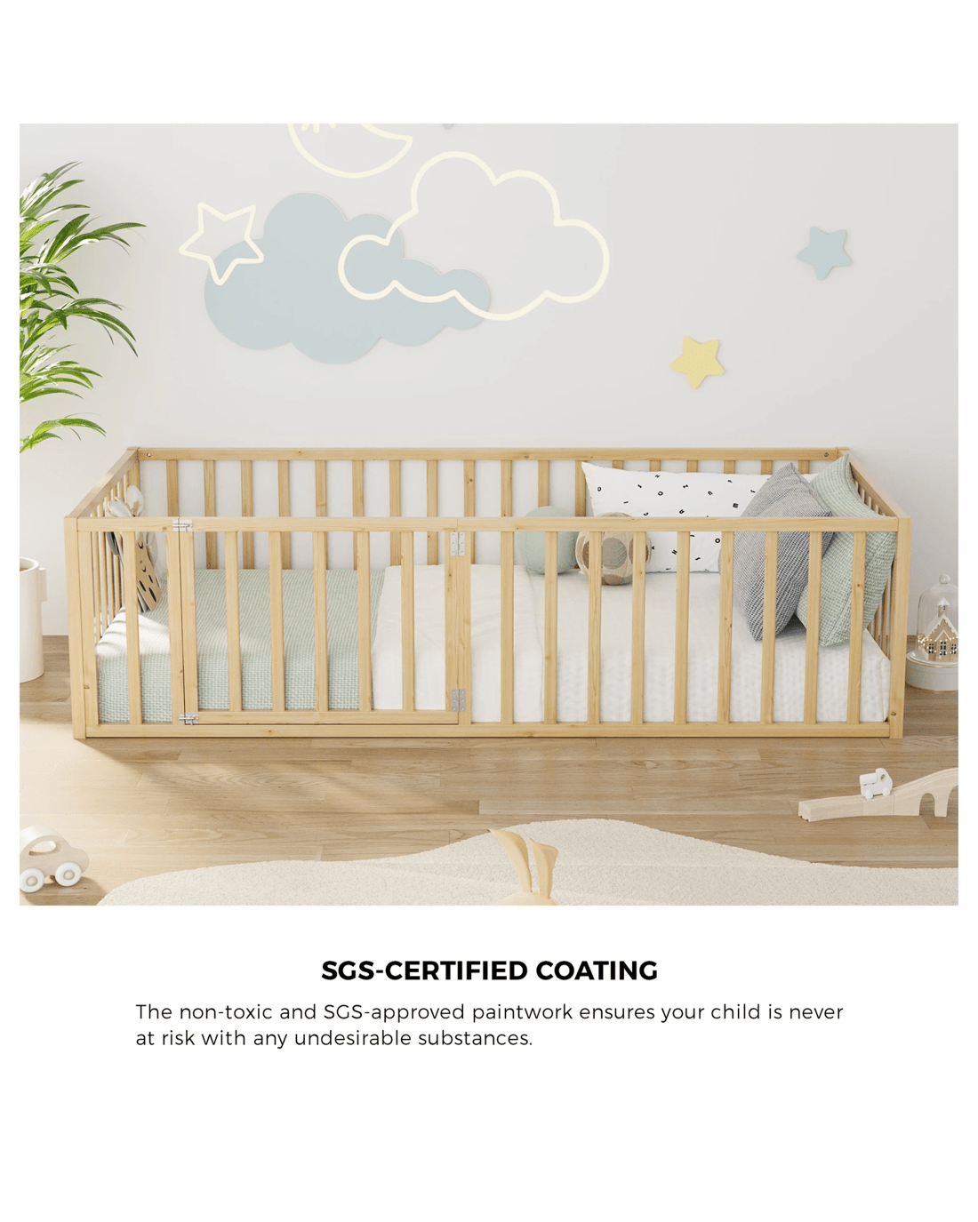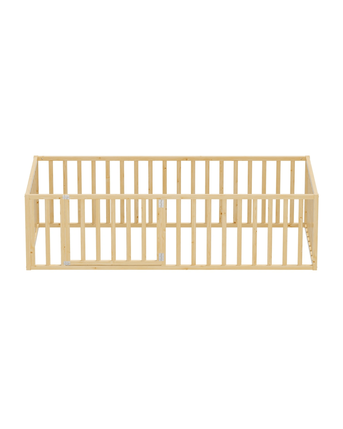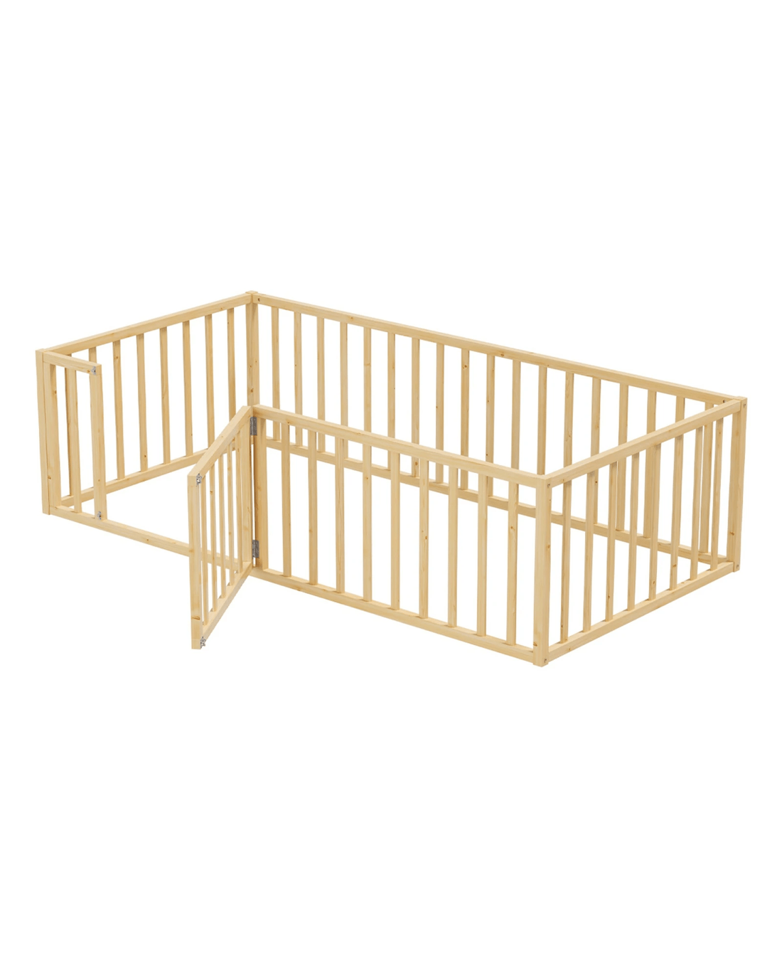 Sold by Kamprad's Oikos 1943Oikiture 2-in-1 Kids Bed Play Centre Fence Gate Single Wood - Natural