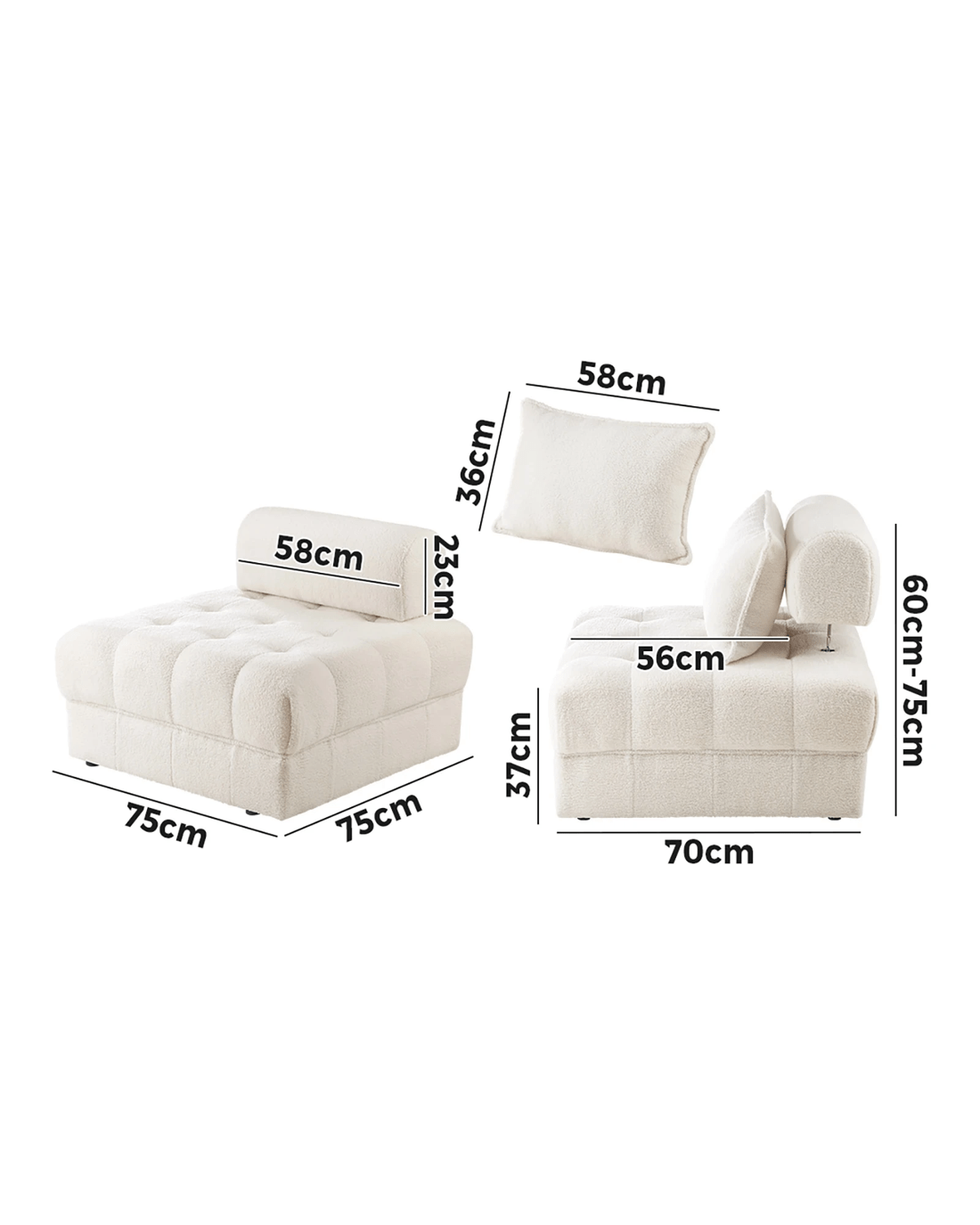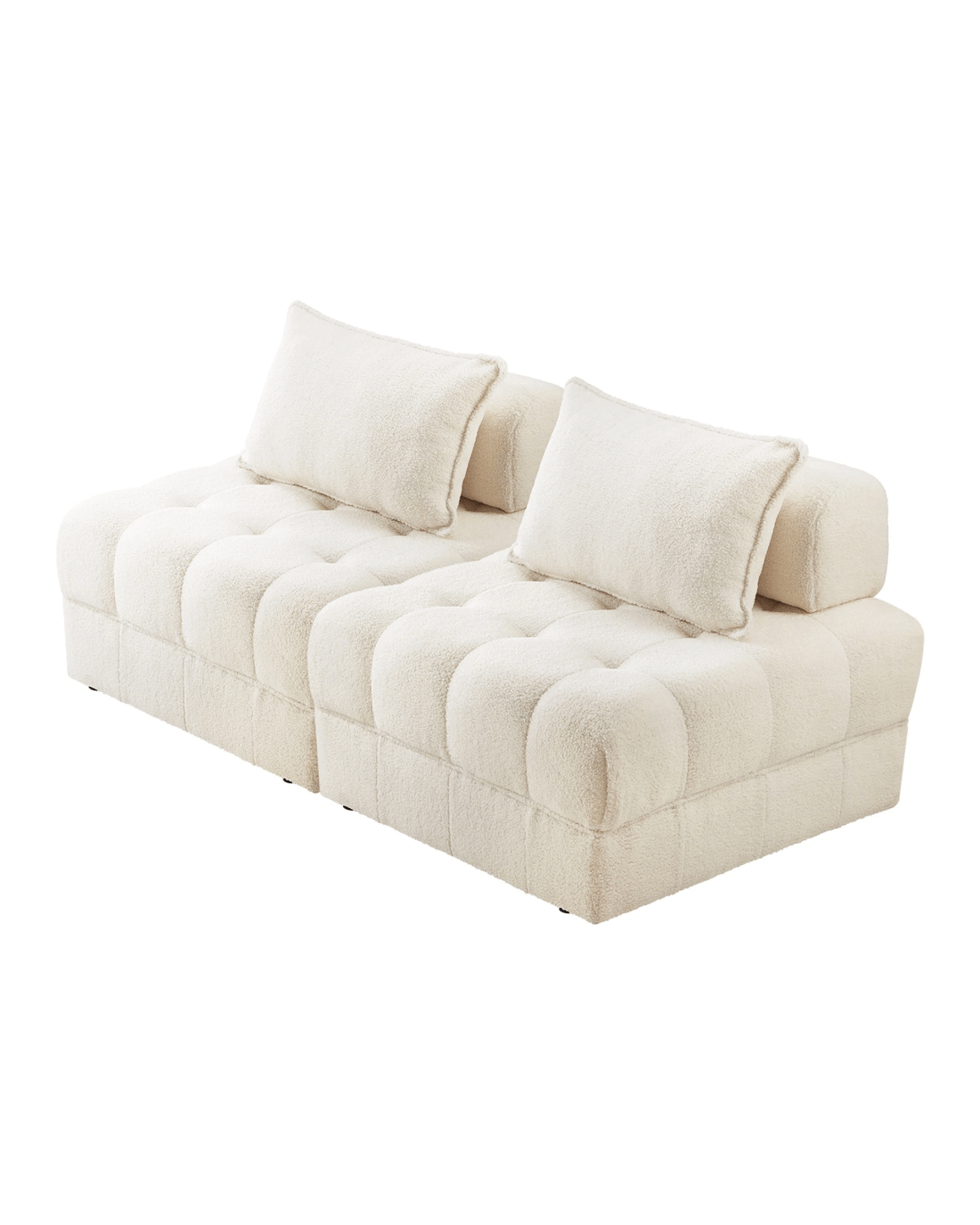 Sold by Kamprad's Oikos 1943Oikiture 2 Seater Boucle Modular Sofa Lounge Chair Armless Tofu Back - White - White