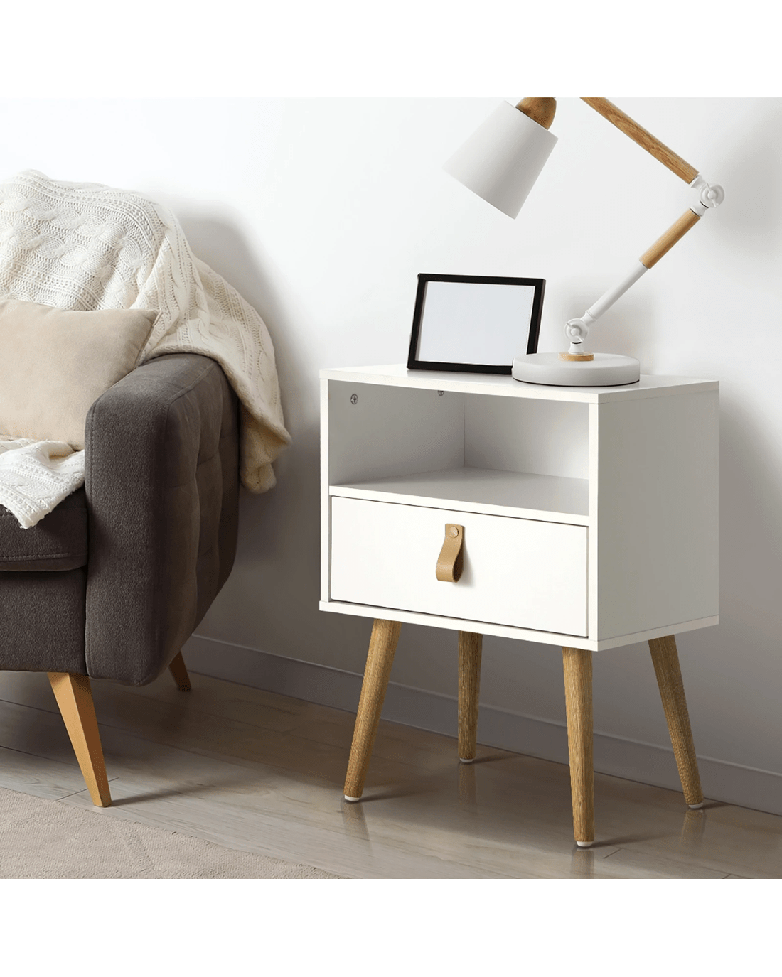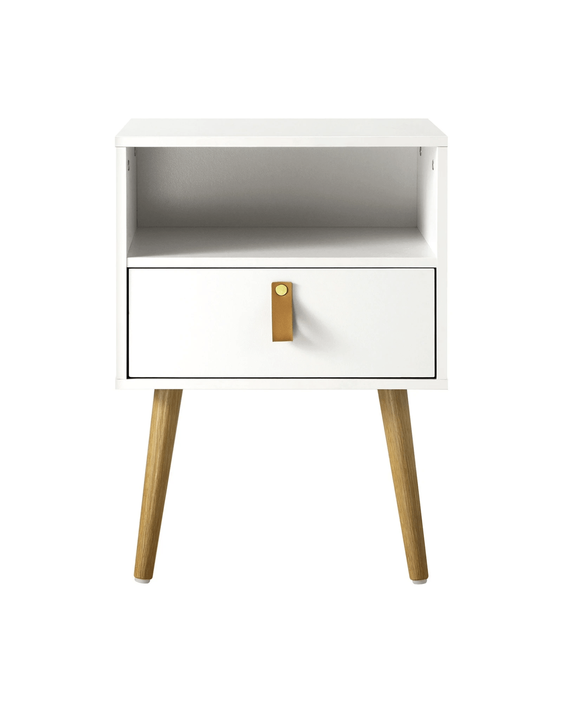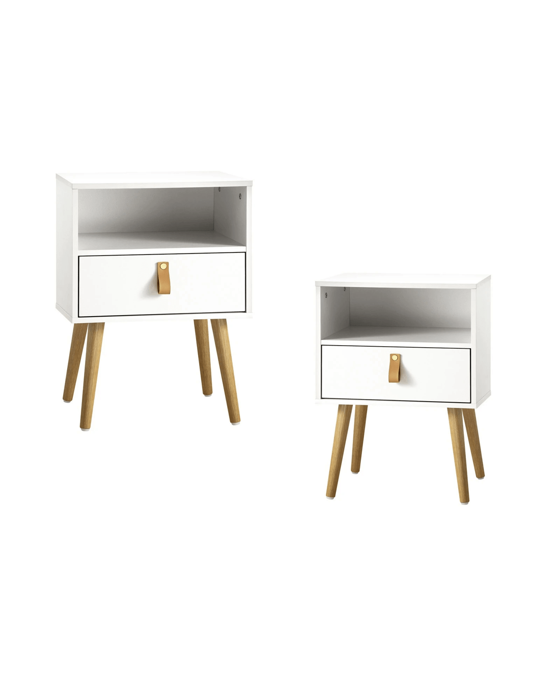 Sold by Kamprad's Oikos 1943Oikiture 2 X Bedside Tables Side Table Leather Handle - White