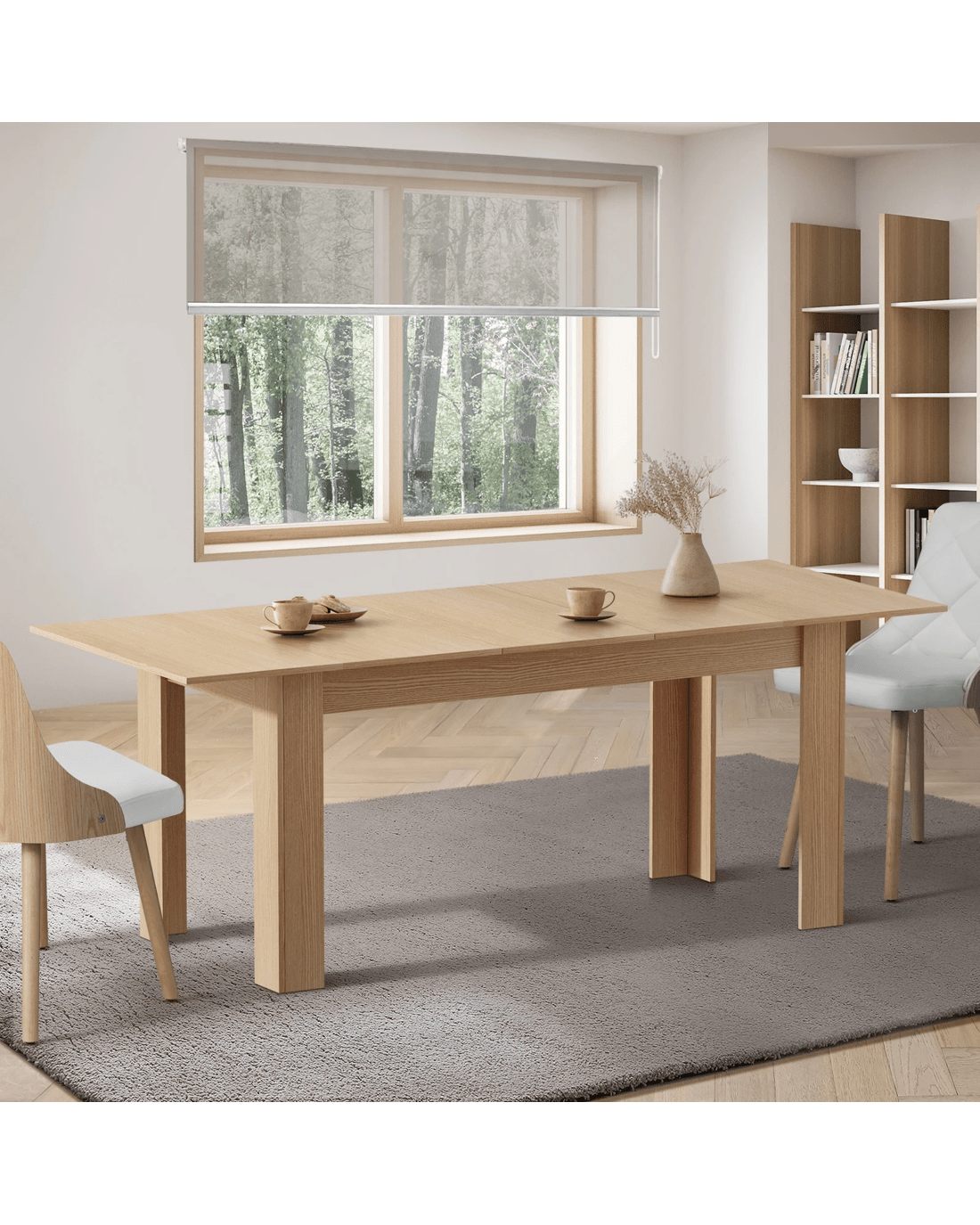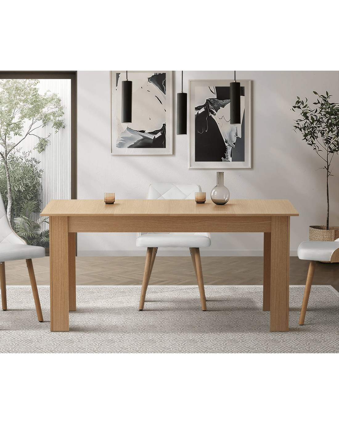 Introducing our stunning Oikiture extendable dining table, a true masterpiece of versatility and style. This table is designed to accommodate your evolving needs, offering the perfect solution for both intimate gatherings and larger dinner parties.