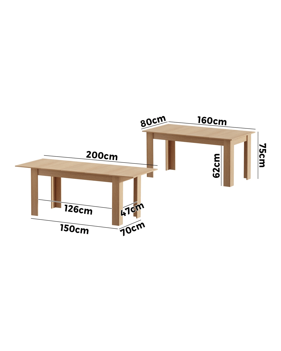 Sold by Kamprad's Oikos 1943Oikiture 200cm Extendable Dining Table Kitchen Restaurant Cafe Table - Natural