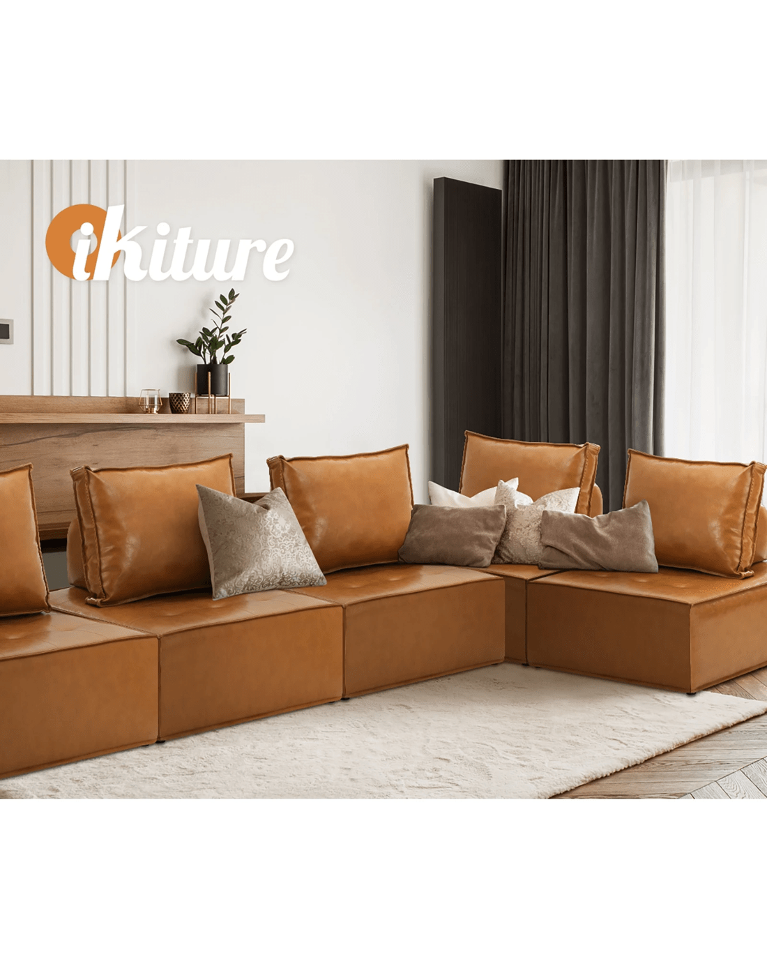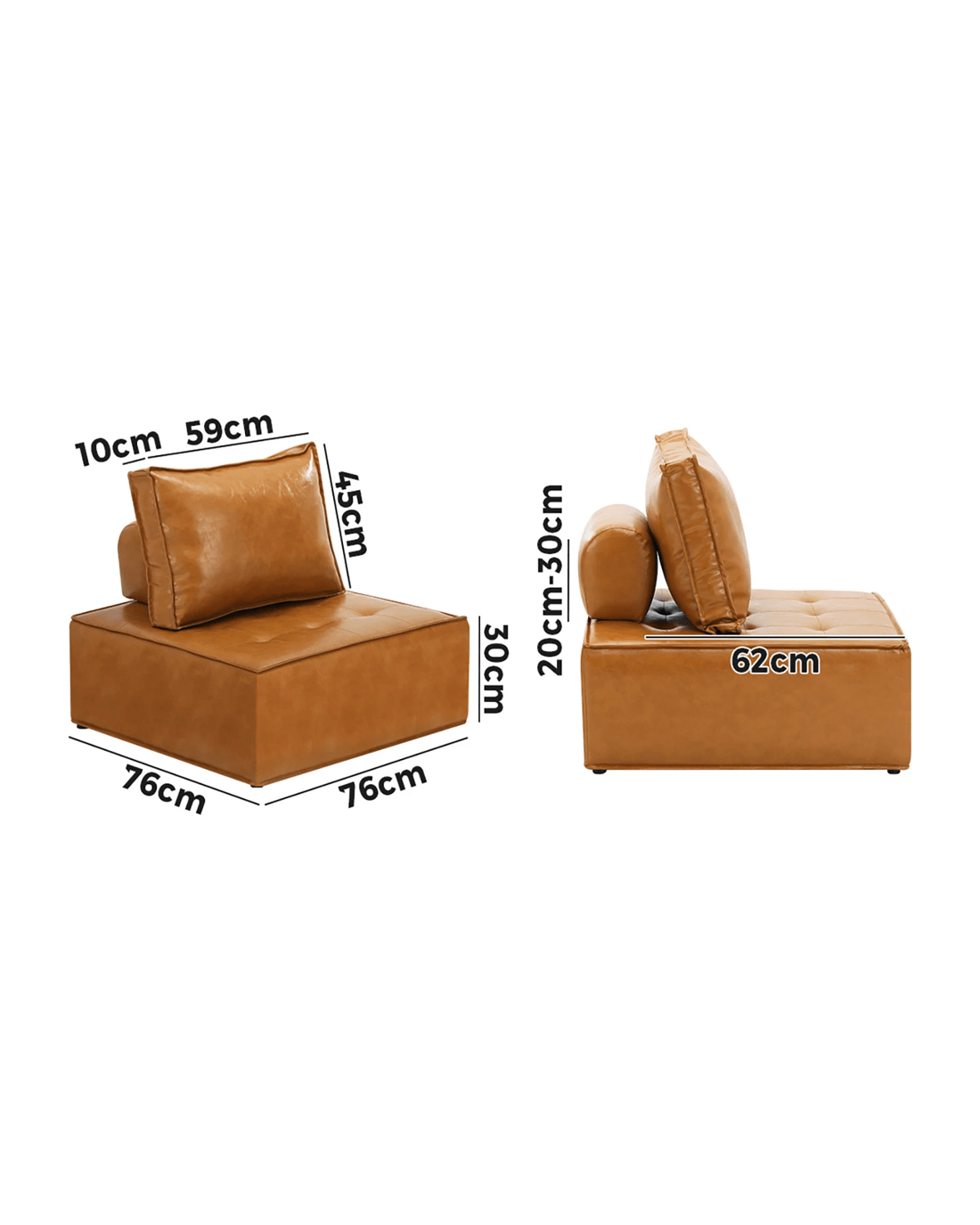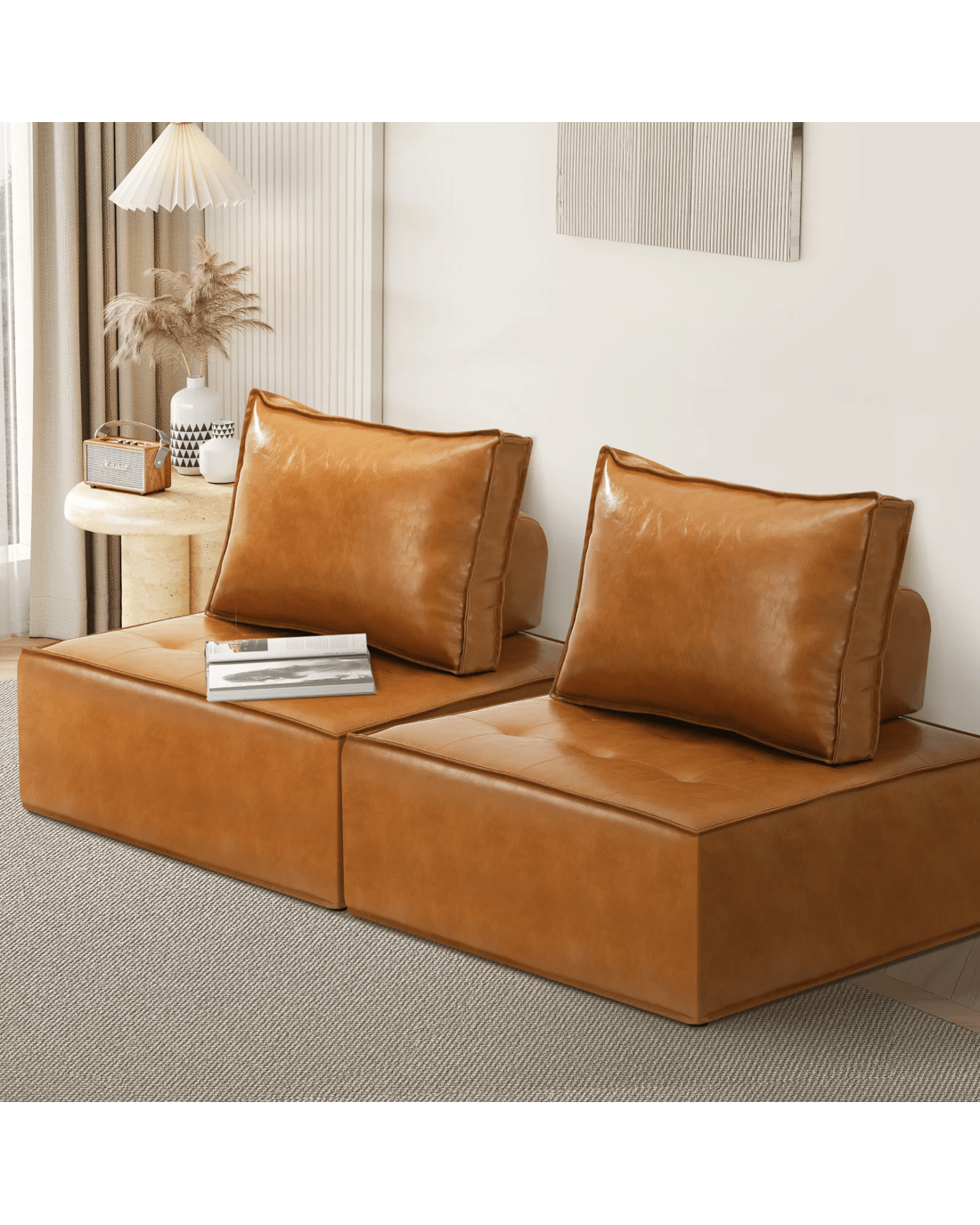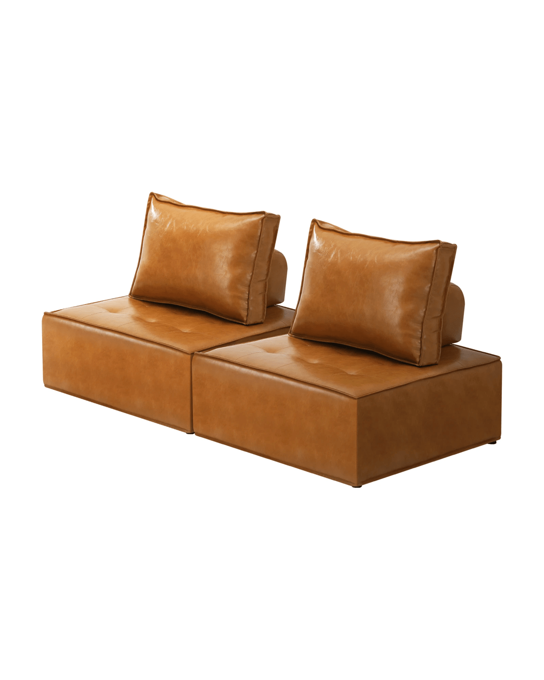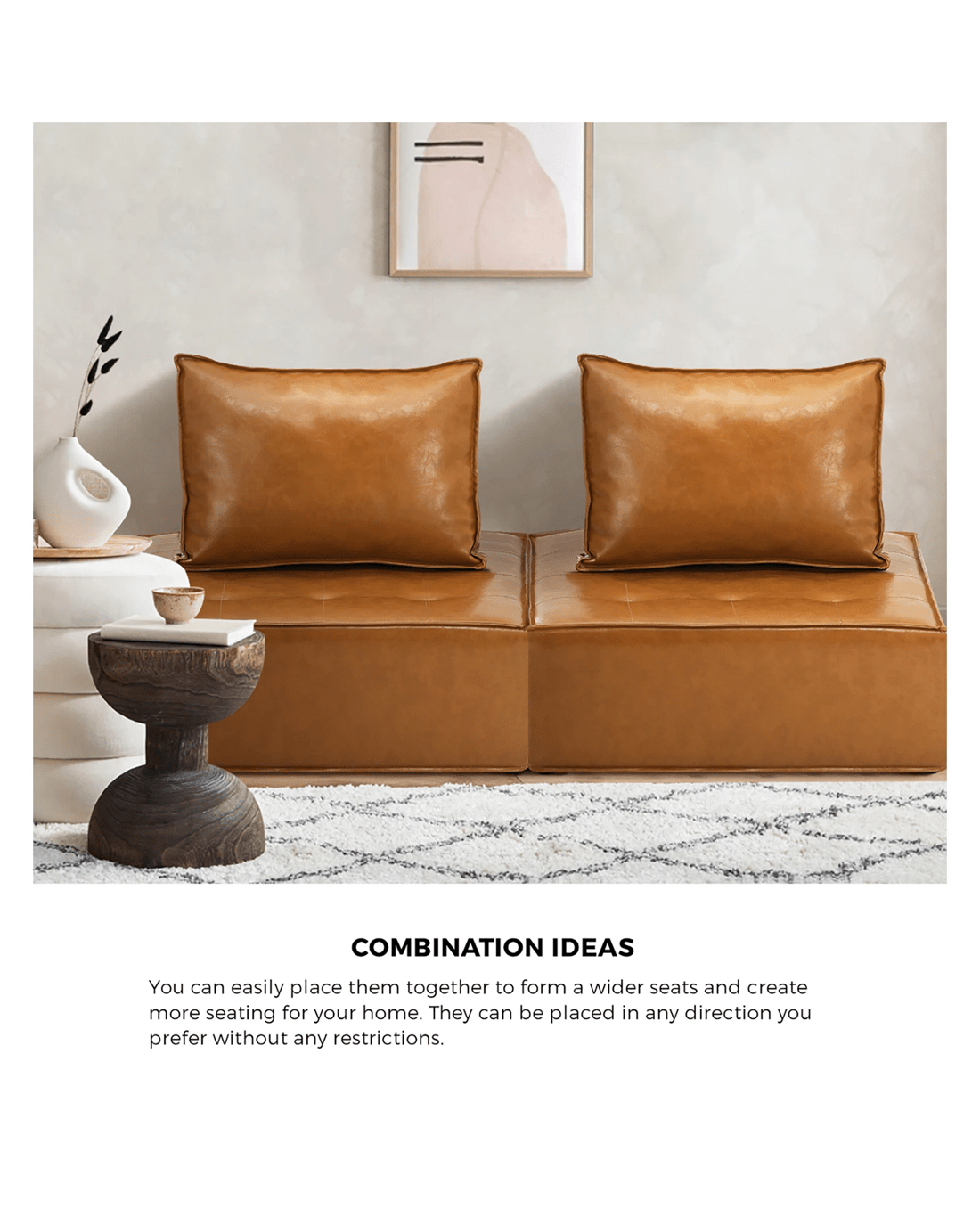 Sold by Kamprad's Oikos 1943Oikiture 2pc Modular Sofa Lounge Chair Armless Tofu Back Pu Leather - Brown