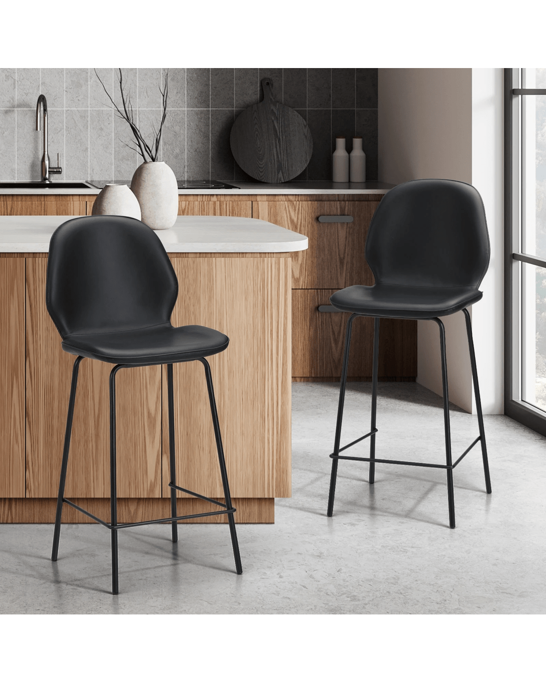 Sold by Kamprad's Oikos 1943Oikiture 2PCS Bar Stools Kitchen Counter Chair Metal - Black
