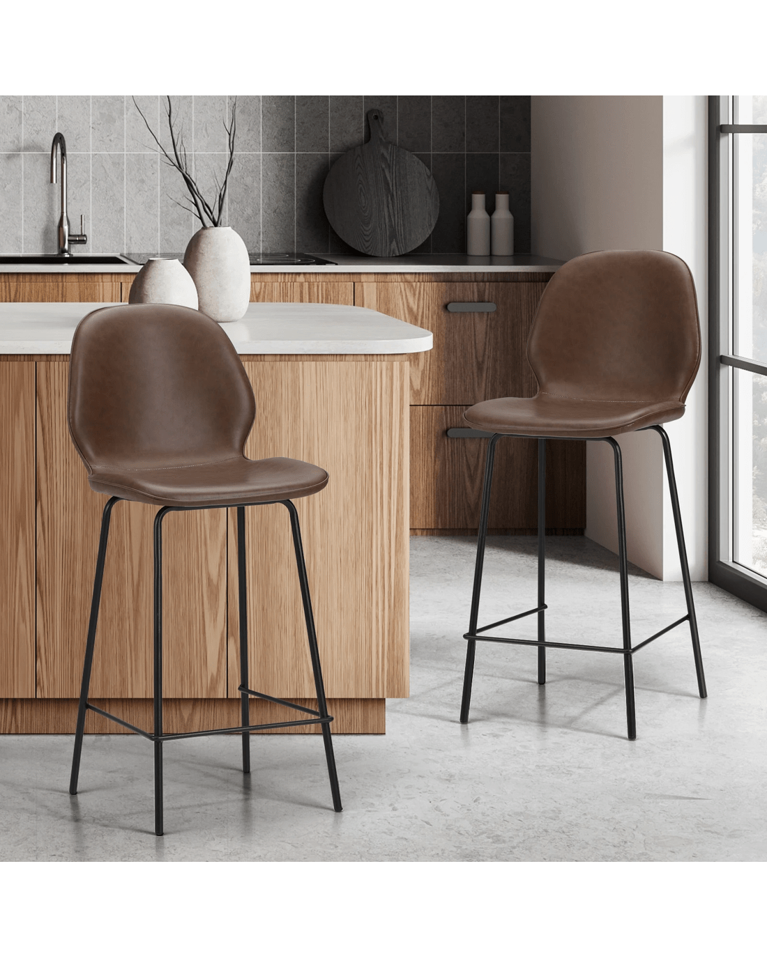 Sold by Kamprad's Oikos 1943Oikiture 2PCS Bar Stools Kitchen Counter Chair Metal - Brown