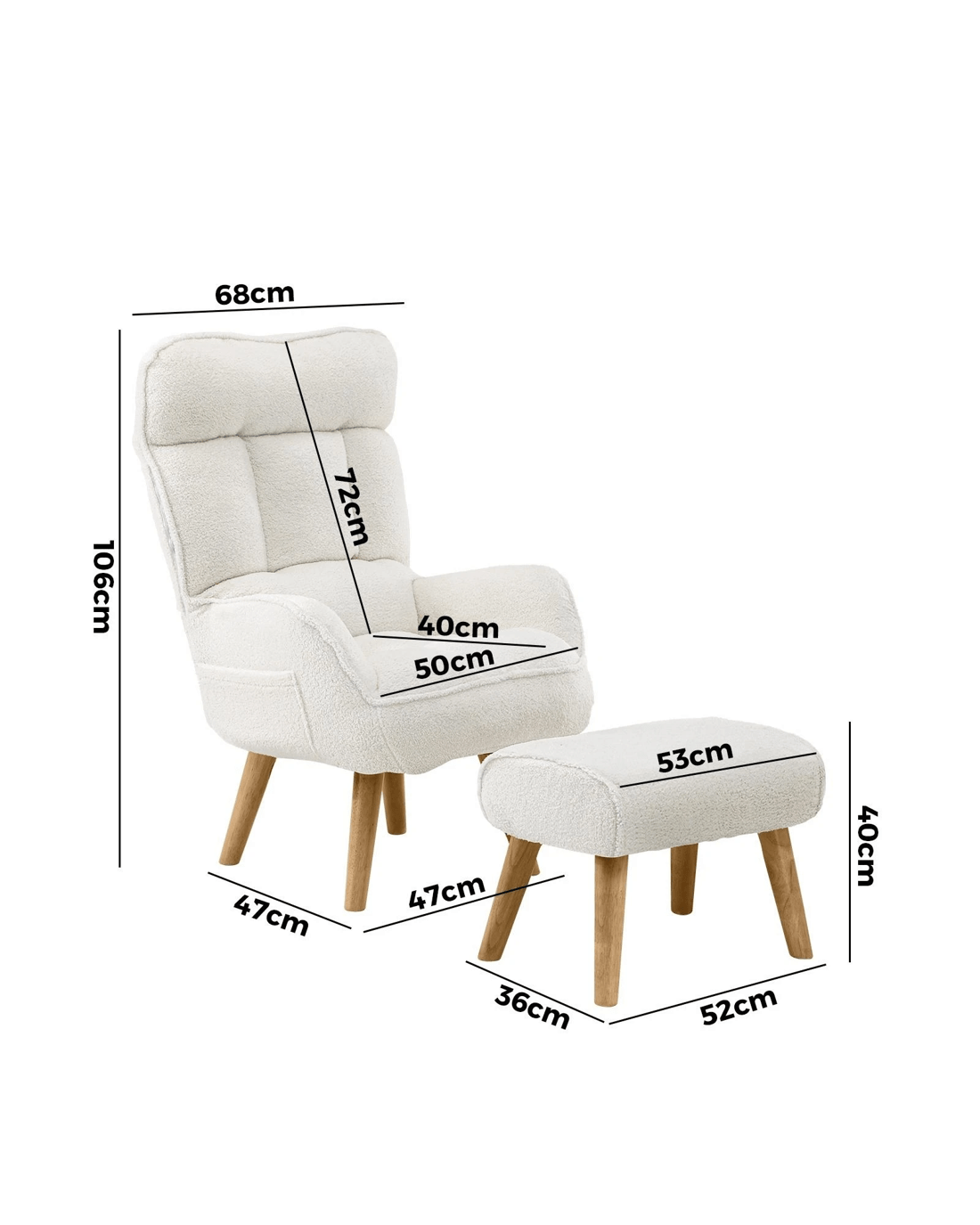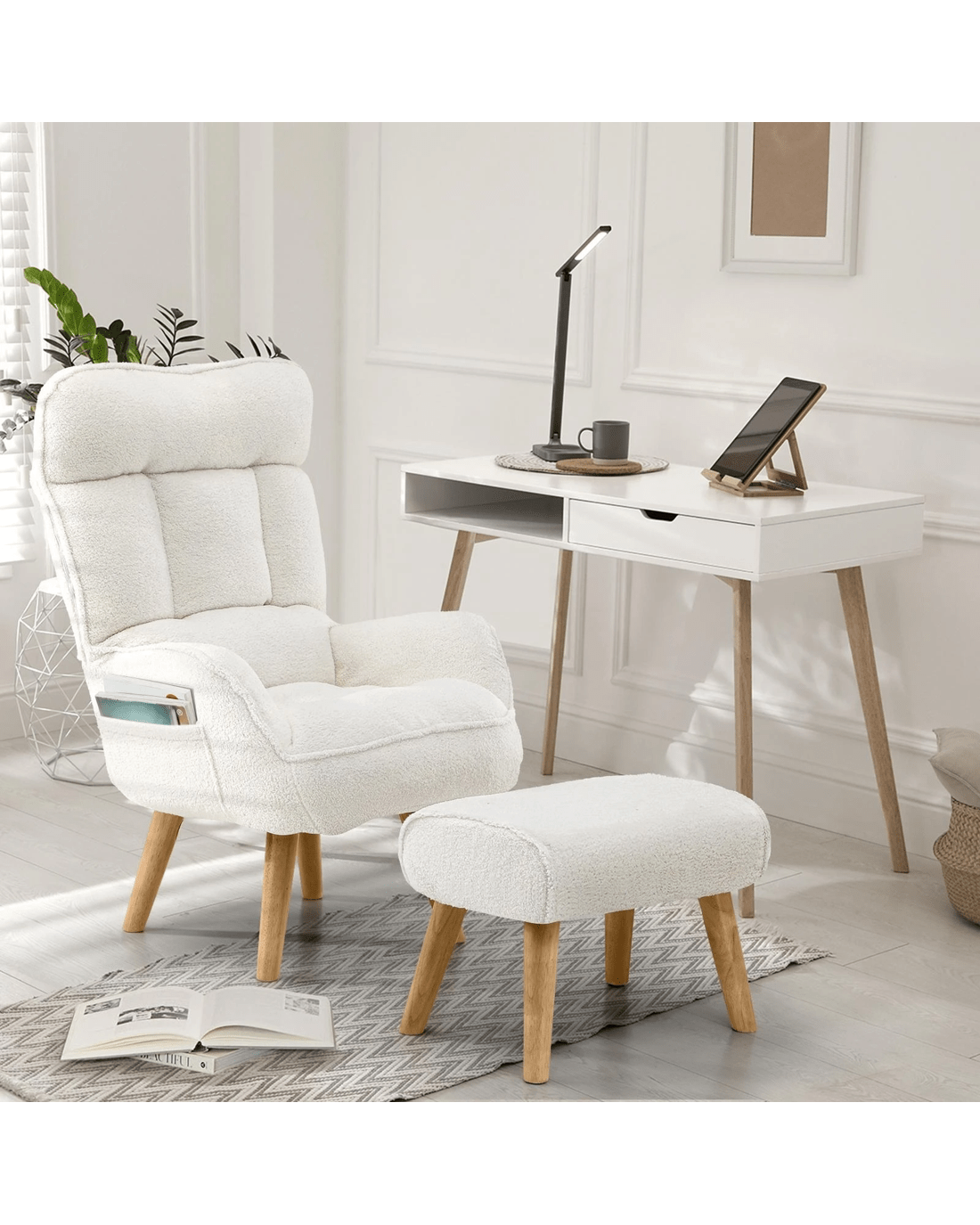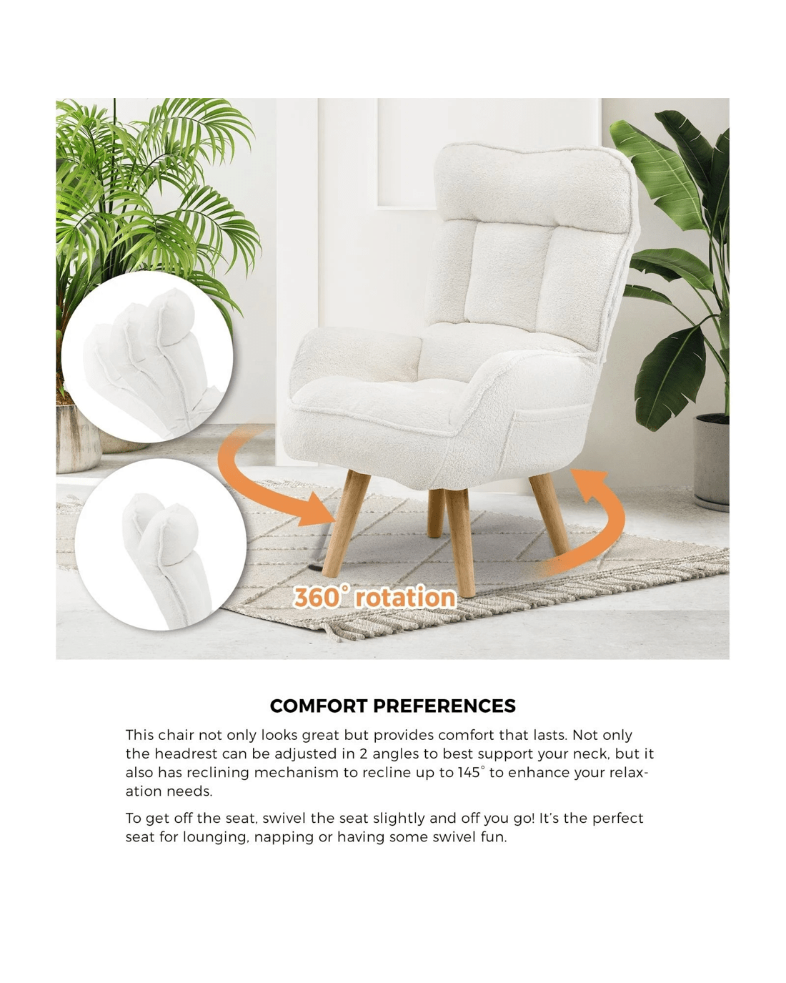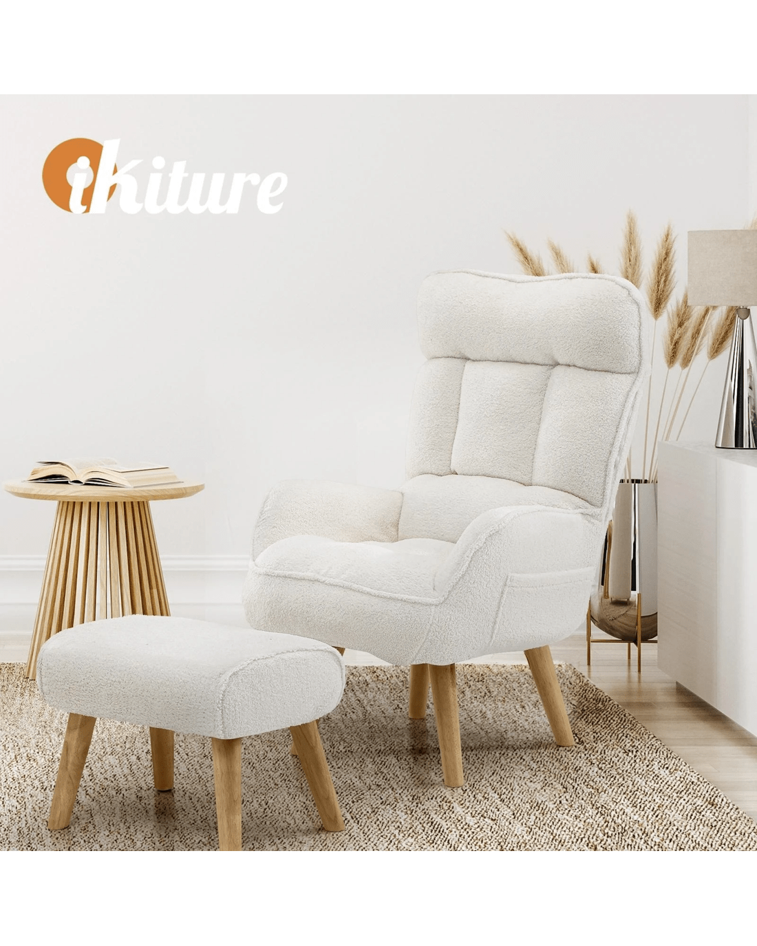 Sold by Kamprad's Oikos 1943Oikiture 2X 360 Swivel Recliner Armchair Lounge Ottoman Chair With Stool Sherpa - White