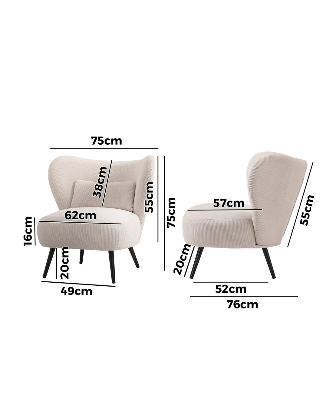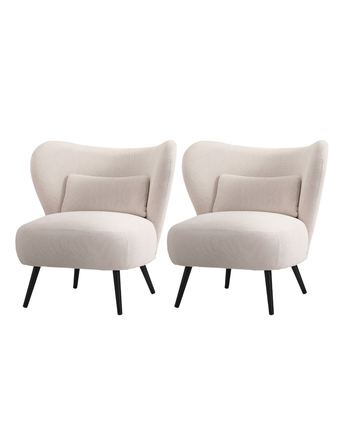 Oikiture 2x Armchair Lounge Chair with Lumbar Pillow Wingback Velvet - Beige
