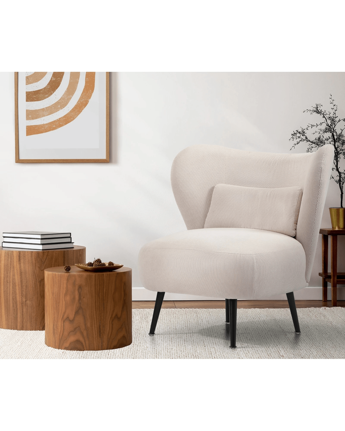 Everyone has their favourite armchair at home. It's the one you go to for relaxation, rest, enjoying entertainment on TV or catching up with your social media. Nothing beats its fit and comfort compared to the rest of the horde. Guess what? This Oikiture Armchair is about to become the new rave for you. With its generous profile proportions incorporating a wide winged backrest and deep seat, the armchair is enriched with full comfort all round. You are certainly well-supported in every department of your body, including a much-appreciated lumbar pillow for your back. Run your hands over the armchair and you'll be duly impressed with the rich, textured upholstery that comes with velvety corduroy fabric. Construction wise, the wooden frame is durable and sturdy and splay black powder-coated metal legs will ensure that stability is never compromised. Finishing is meticulous to say the least. So fancy a sit down in this beautiful accent piece? Get your order in today and choose your desired colourto match up with your discerning home decor.