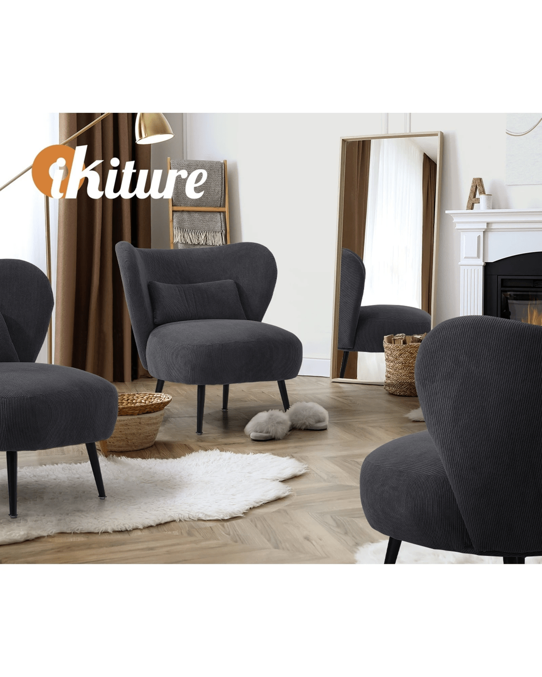 Everyone has their favourite armchair at home. It's the one you go to for relaxation, rest, enjoying entertainment on TV or catching up with your social media. Nothing beats its fit and comfort compared to the rest of the horde. Guess what? This Oikiture Armchair is about to become the new rave for you. With its generous profile proportions incorporating a wide winged backrest and deep seat, the armchair is enriched with full comfort all round. You are certainly well-supported in every department of your body, including a much-appreciated lumbar pillow for your back. Run your hands over the armchair and you'll be duly impressed with the rich, textured upholstery that comes with velvety corduroy fabric. Construction wise, the wooden frame is durable and sturdy and splay black powder-coated metal legs will ensure that stability is never compromised. Finishing is meticulous to say the least. So fancy a sit down in this beautiful accent piece? Get your order in today and choose your desired colourto match up with your discerning home decor.