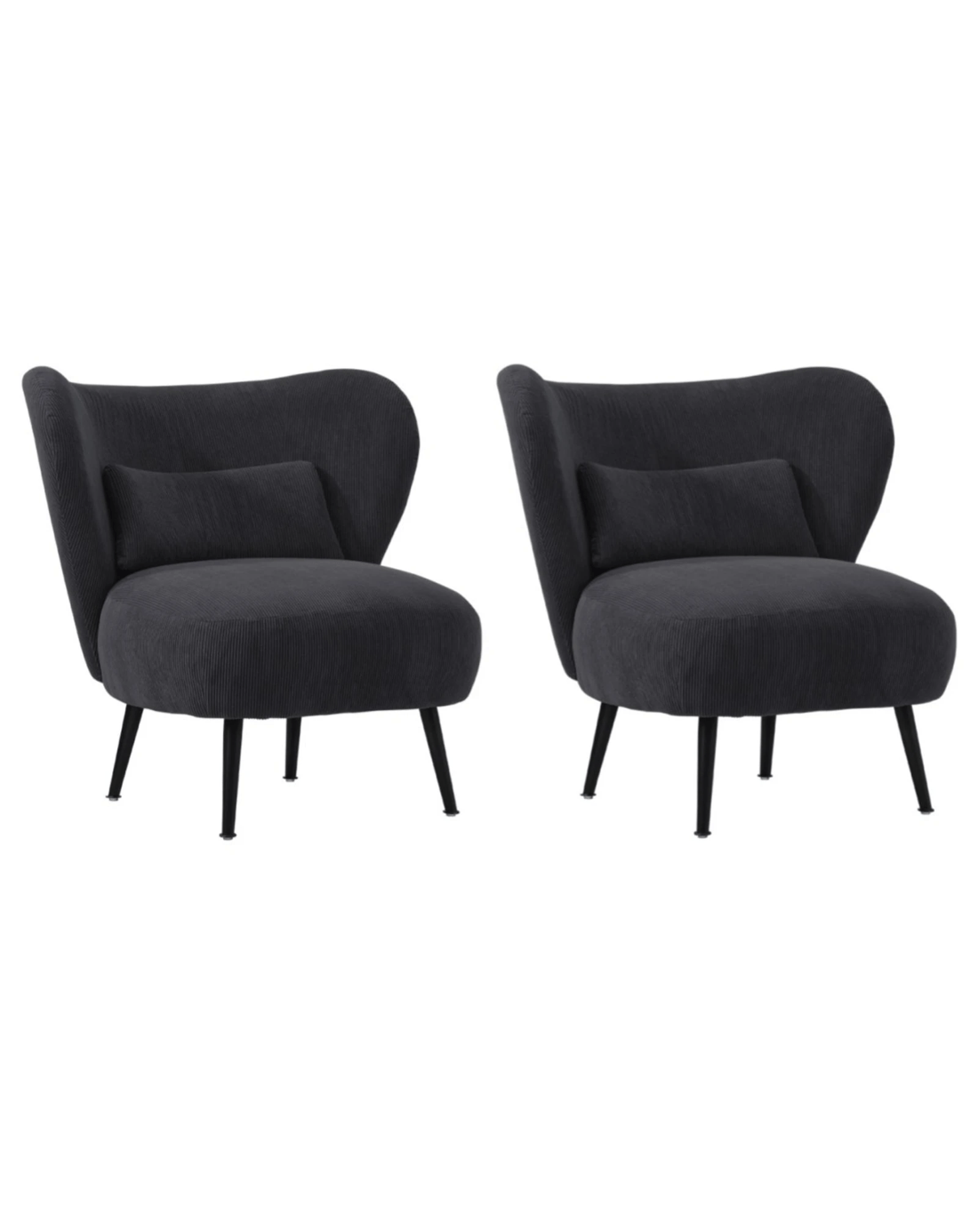Oikiture 2x Armchair Lounge Chair With Lumbar Pillow Wingback Velvet - Charcoal