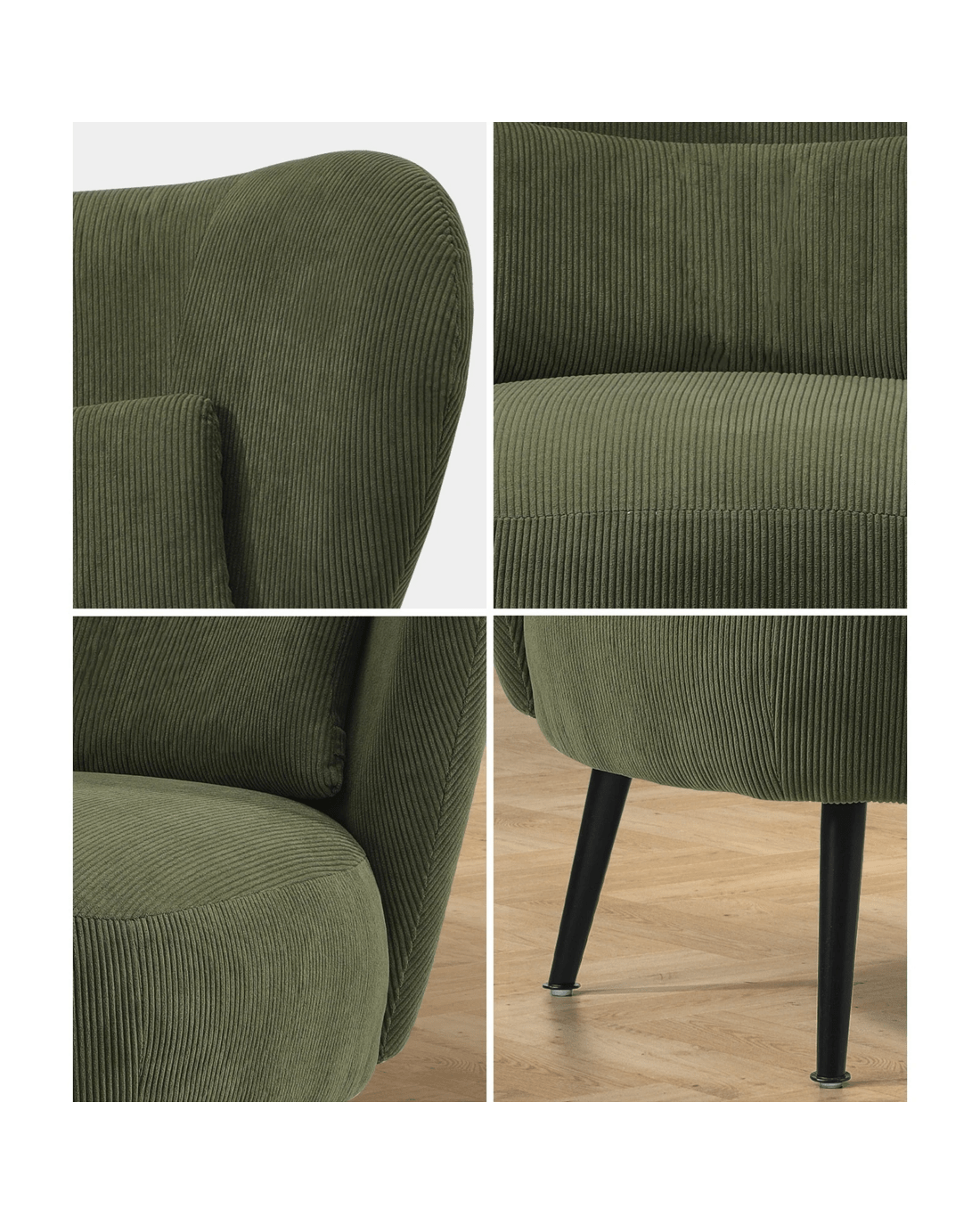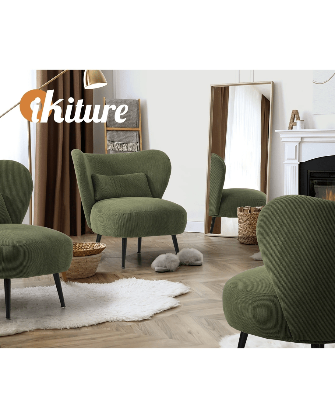Everyone has their favourite armchair at home. It's the one you go to for relaxation, rest, enjoying entertainment on TV or catching up with your social media. Nothing beats its fit and comfort compared to the rest of the horde. Guess what? This Oikiture Armchair is about to become the new rave for you. With its generous profile proportions incorporating a wide winged backrest and deep seat, the armchair is enriched with full comfort all round. You are certainly well-supported in every department of your body, including a much-appreciated lumbar pillow for your back. Run your hands over the armchair and you'll be duly impressed with the rich, textured upholstery that comes with velvety corduroy fabric. Construction wise, the wooden frame is durable and sturdy and splay black powder-coated metal legs will ensure that stability is never compromised. Finishing is meticulous to say the least. So fancy a sit down in this beautiful accent piece? Get your order in today and choose your desired colourto match up with your discerning home decor.