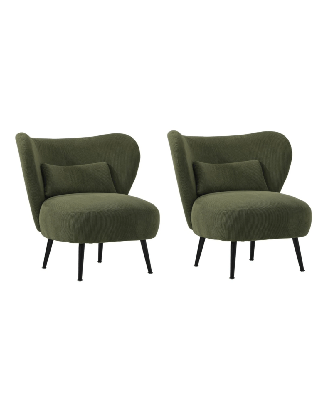 Oikiture 2x Armchair Lounge Chair With Lumbar Pillow Wingback Velvet - Green