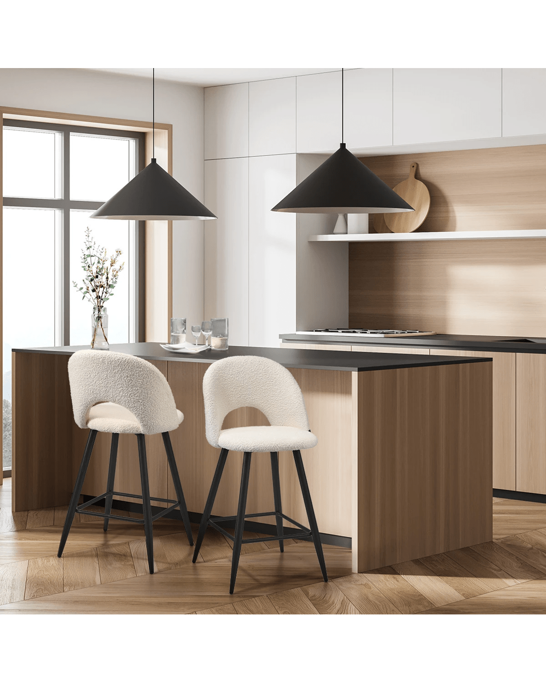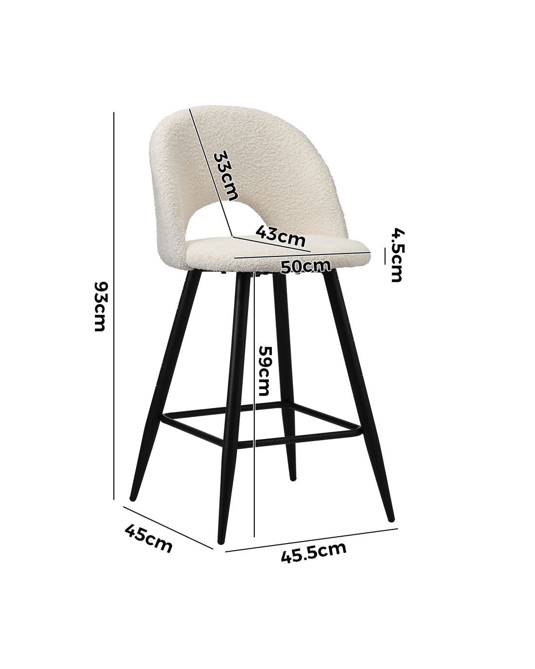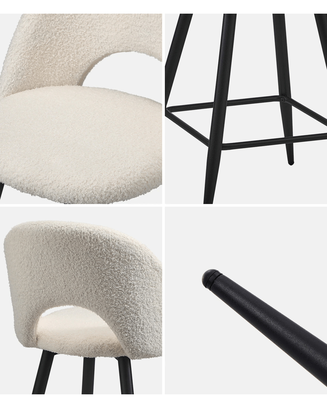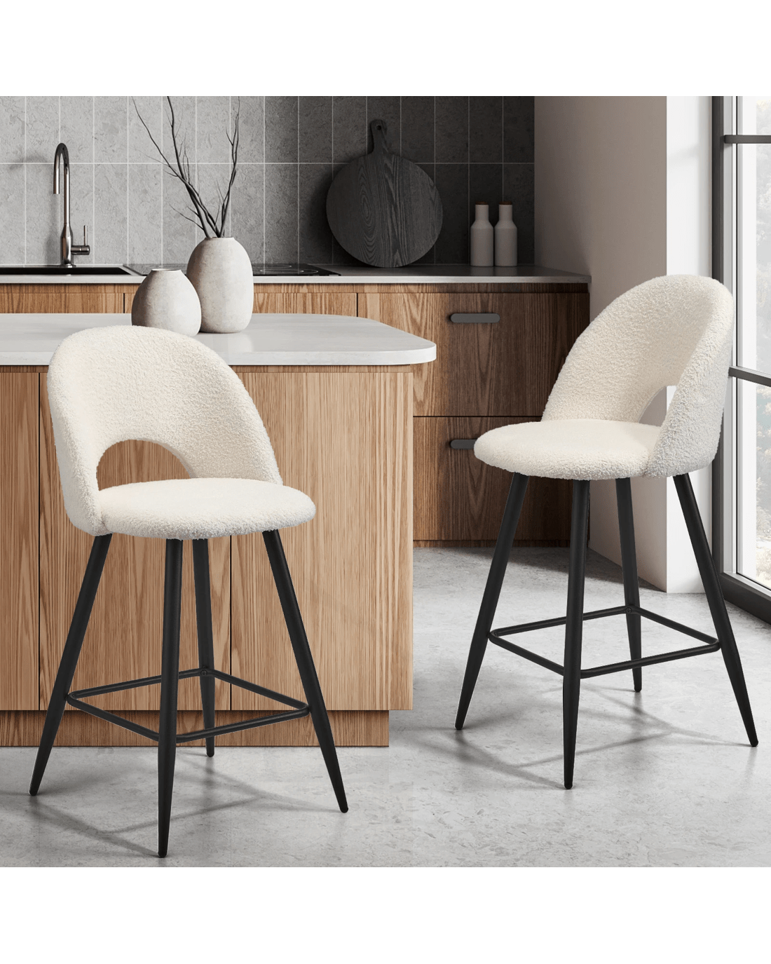 Sold by Kamprad's Oikos 1943Oikiture 2x Bar Stools Kitchen Counter Stool Dining Chairs Boucle Horn - White