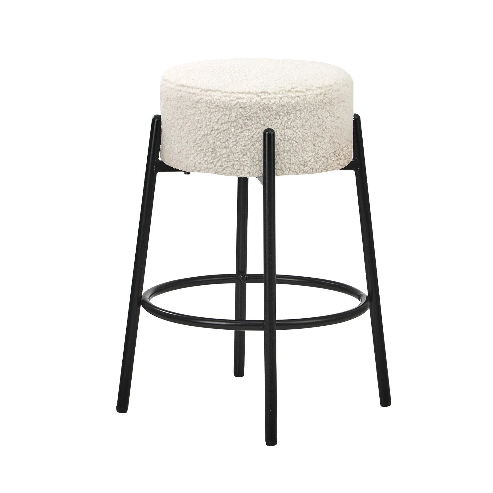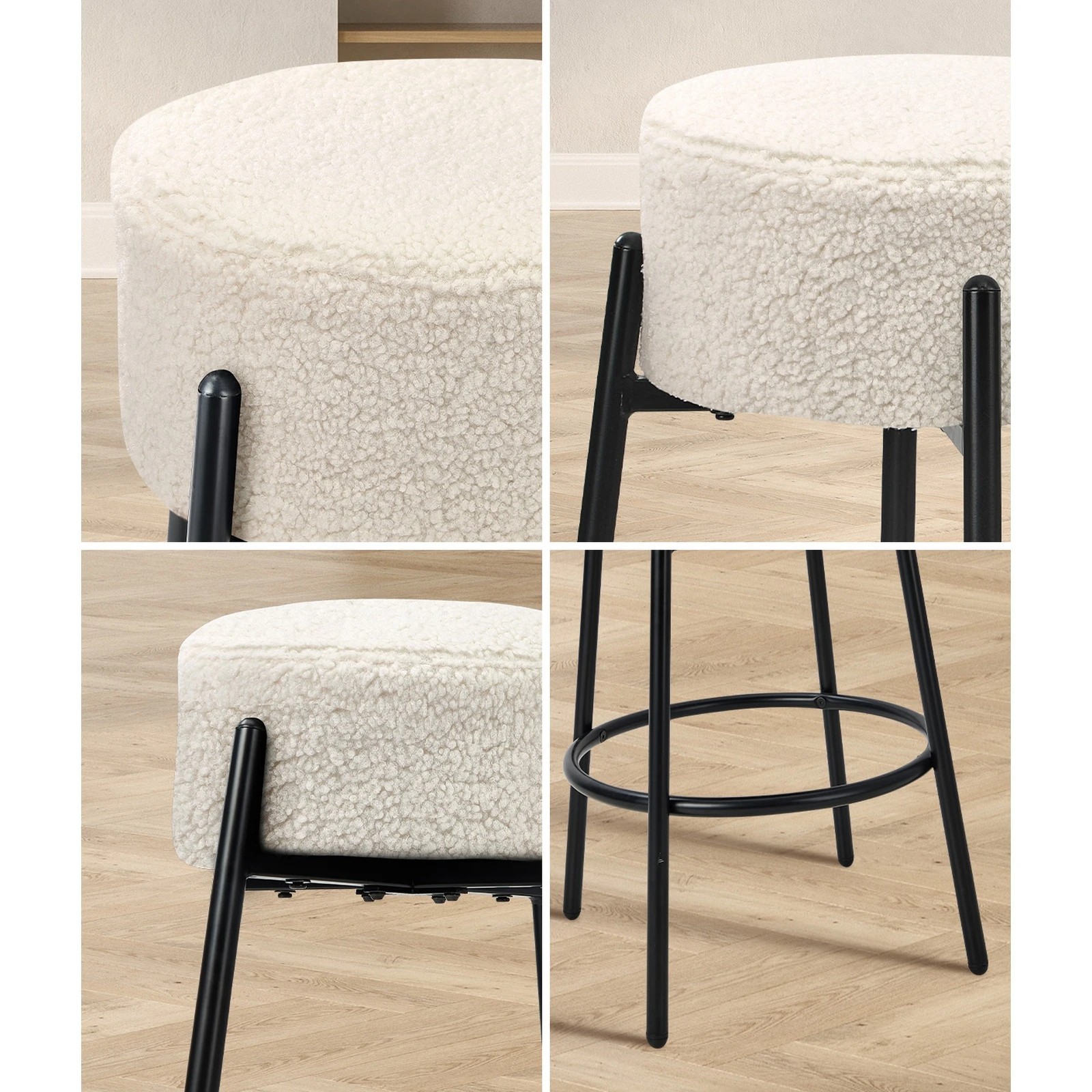 Oikiture 2x Bar Stools Kitchen Dining Chair Round Stool Boucle Fabric - White