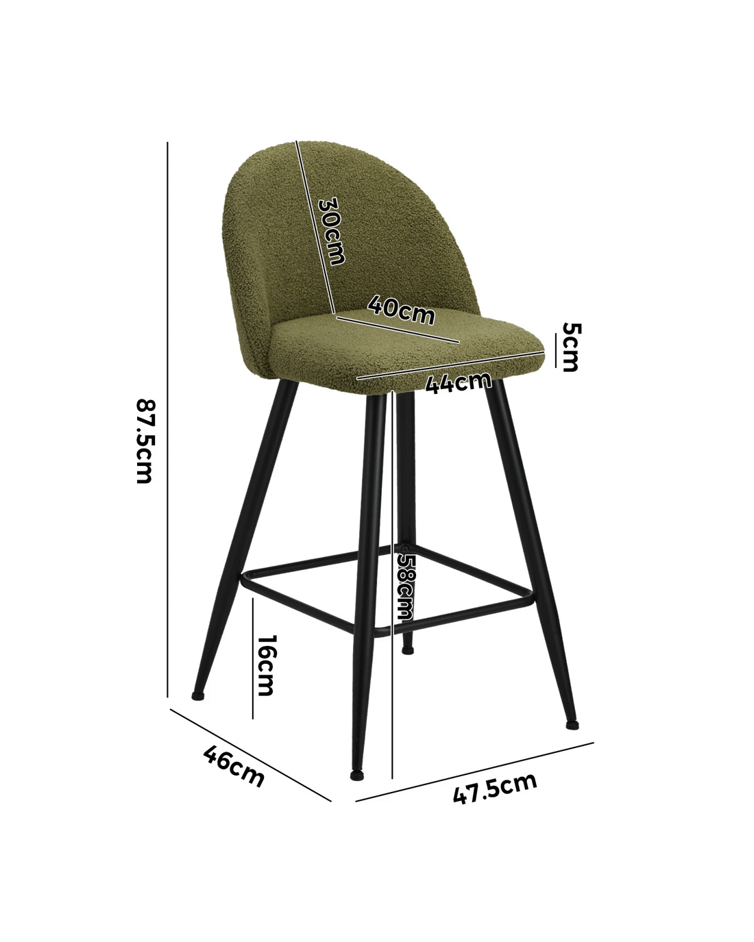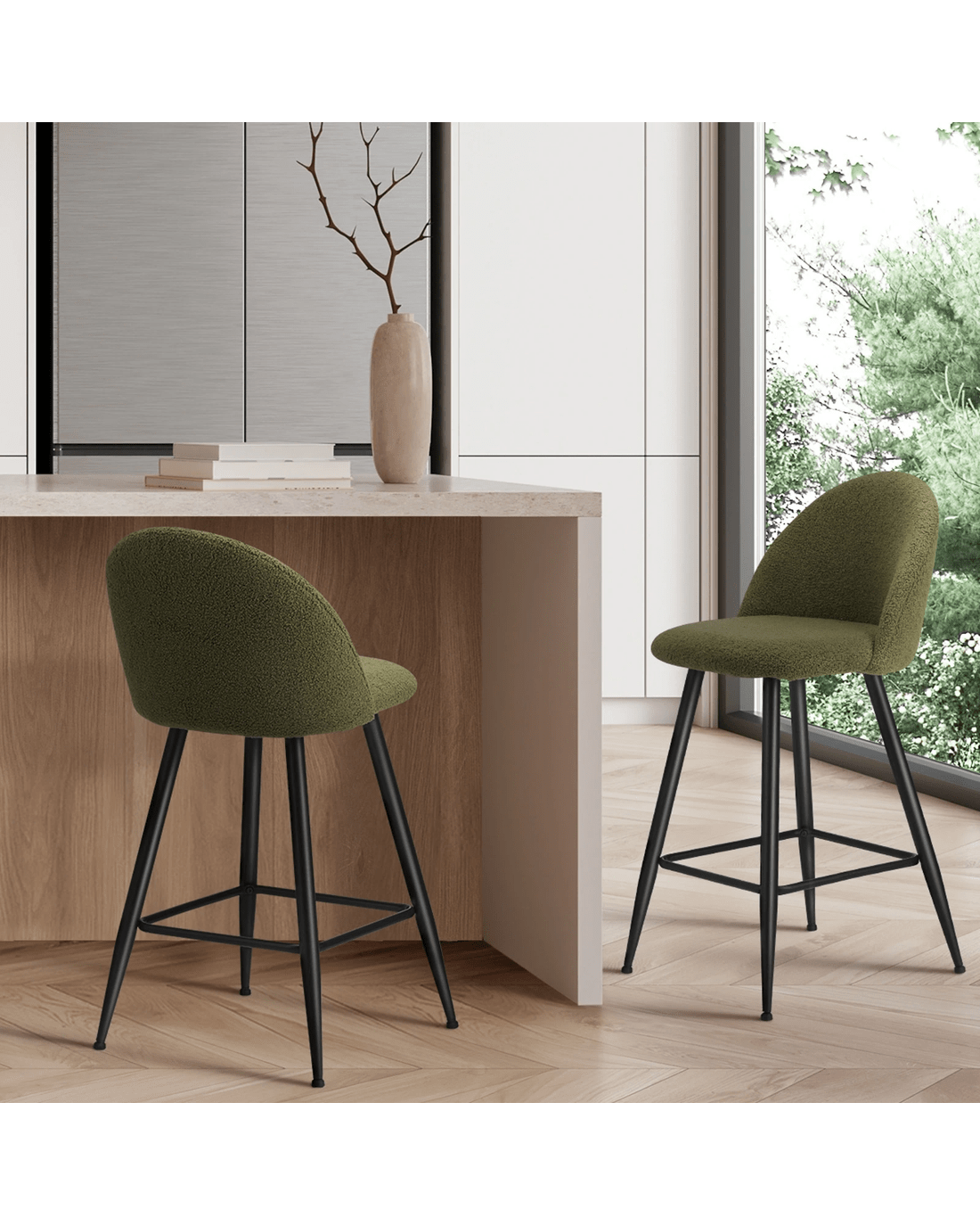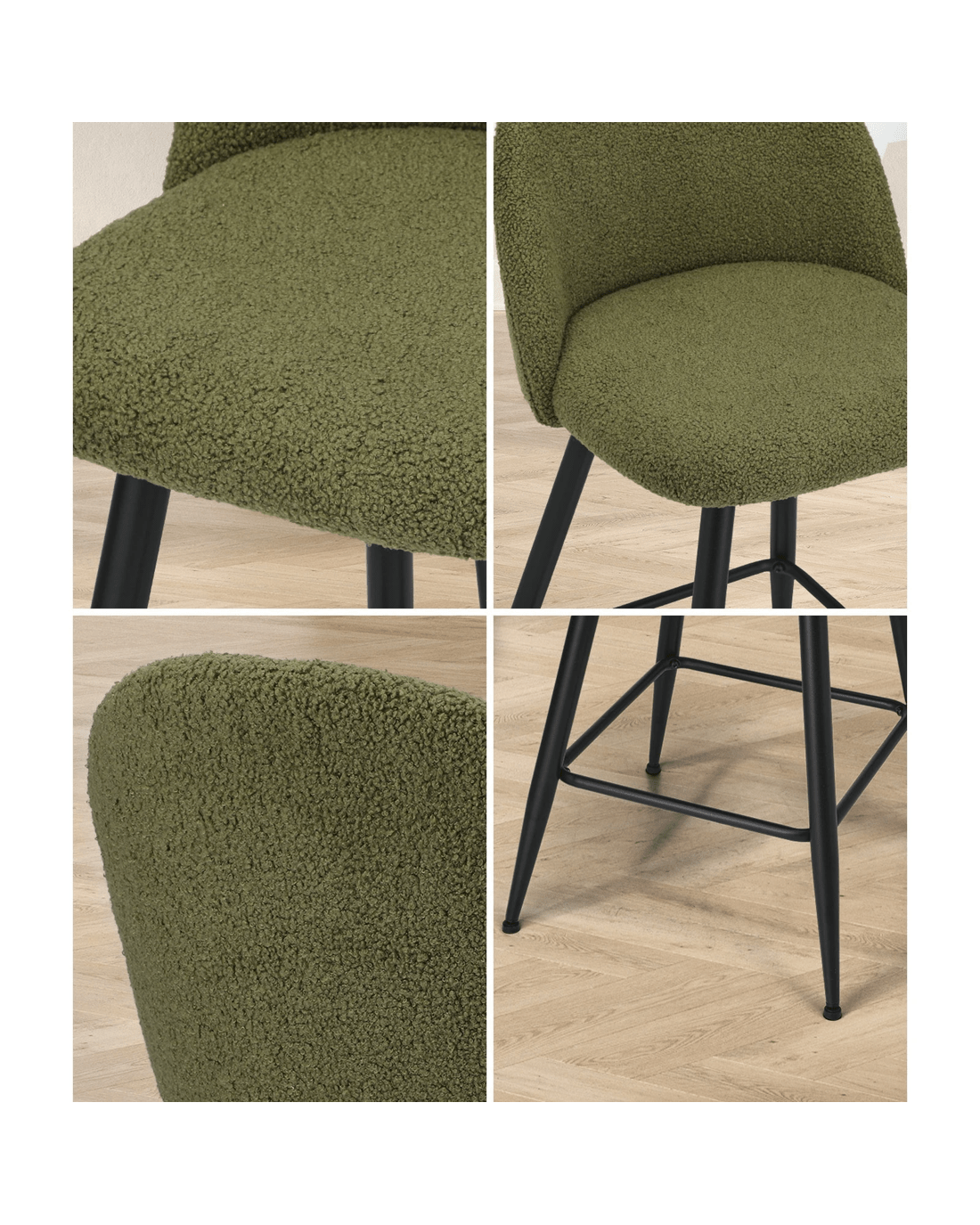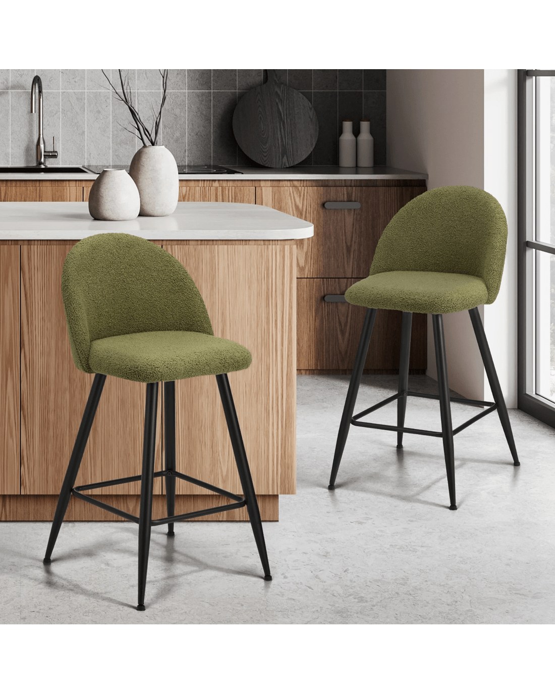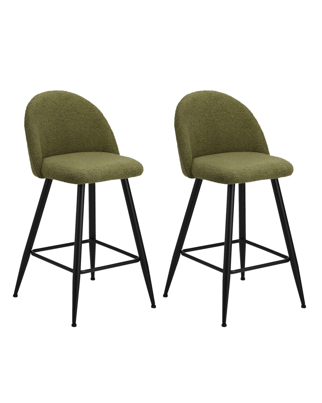 Sold by Kamprad's Oikos 1943Oikiture 2x Bar Stools Kitchen Dining Chairs Counter Stool Boucle Padded - Green