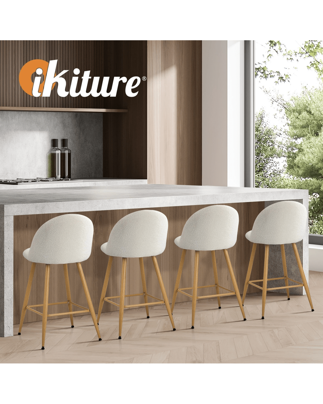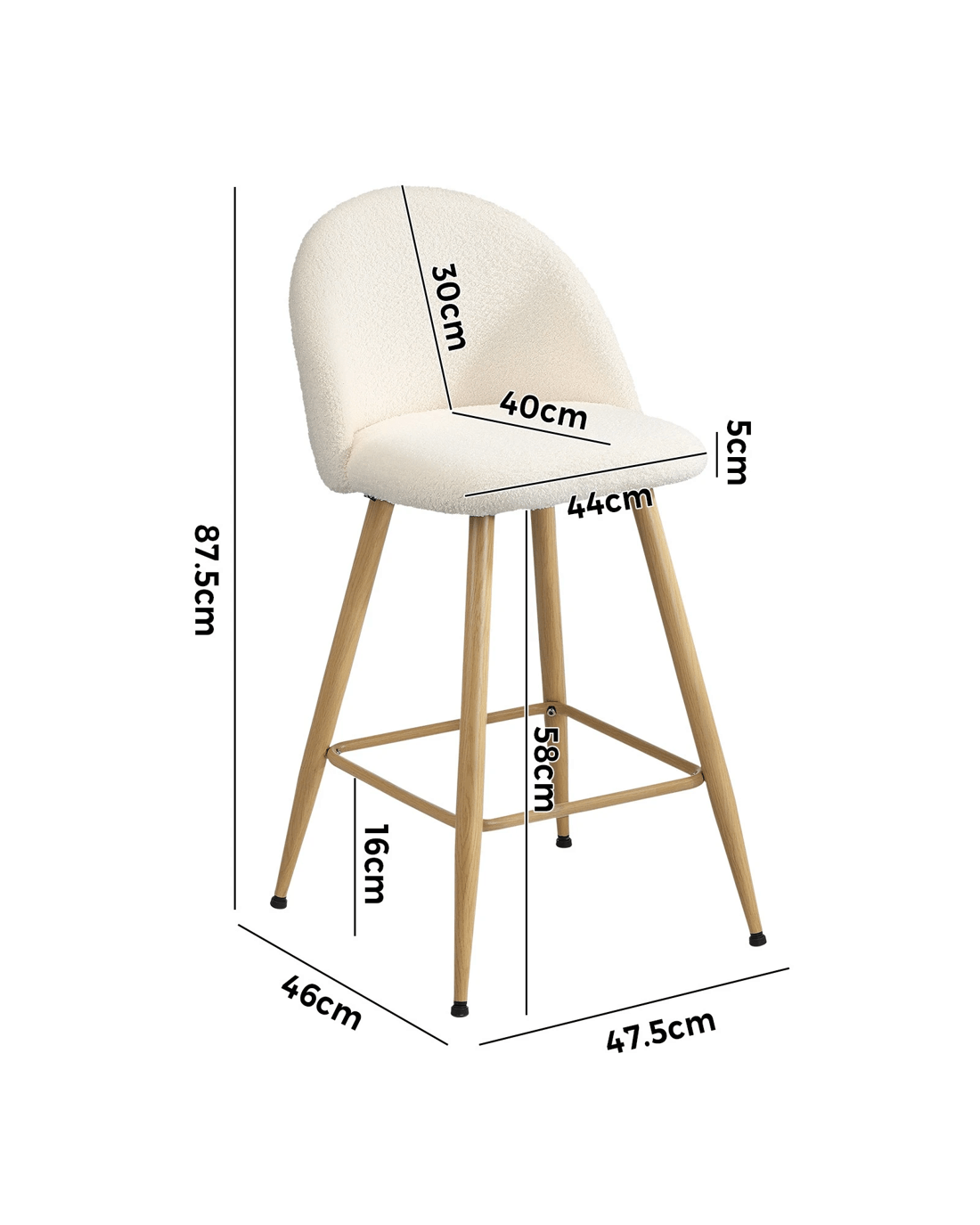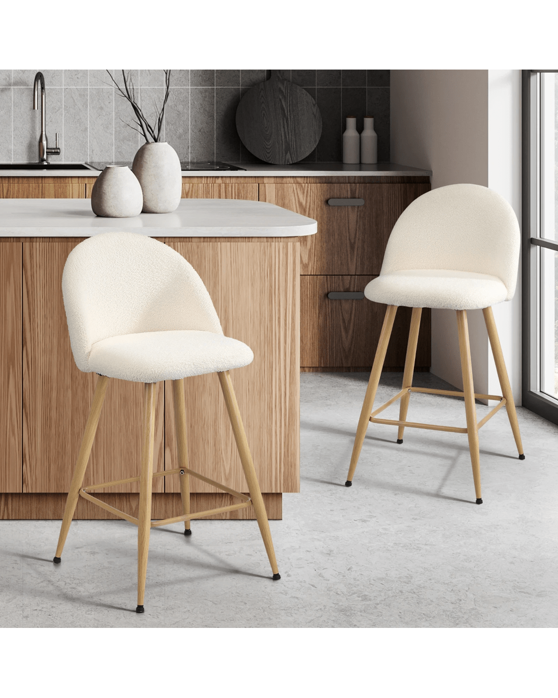 Sold by Kamprad's Oikos 1943Oikiture 2x Bar Stools Kitchen Dining Chairs Counter Stool Boucle Padded Stools - Beige