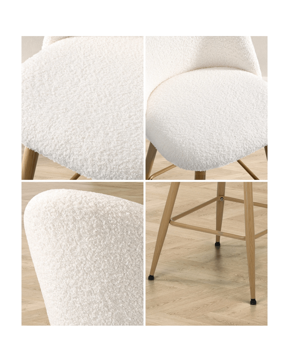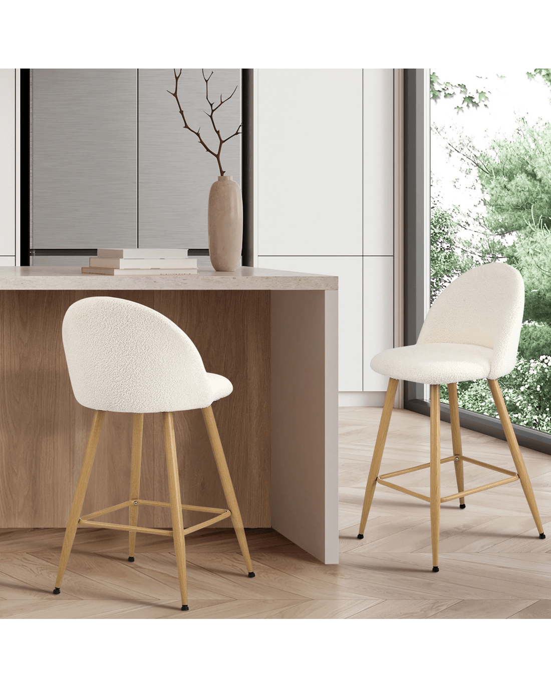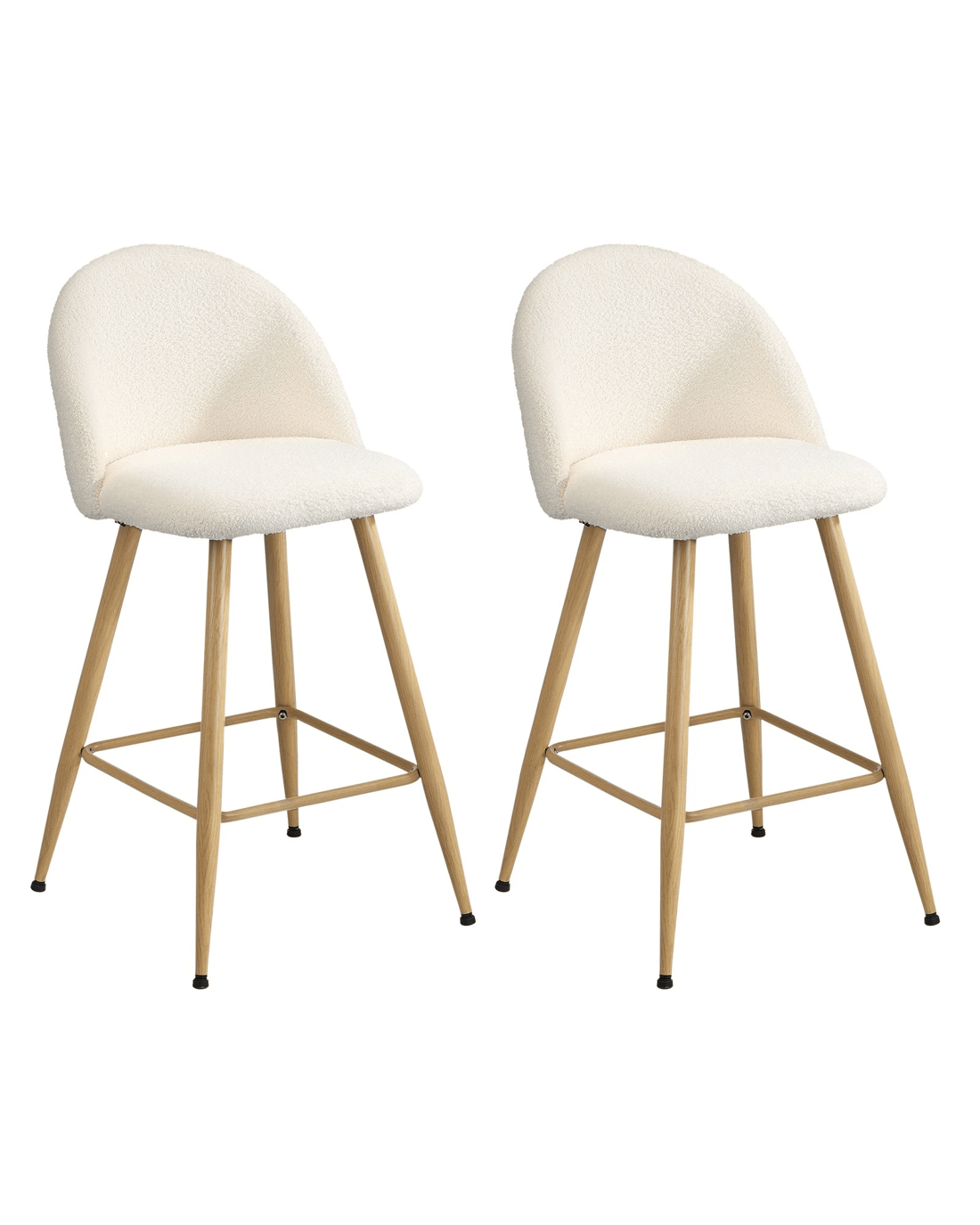 Sold by Kamprad's Oikos 1943Oikiture 2x Bar Stools Kitchen Dining Chairs Counter Stool Boucle Padded Stools - Beige