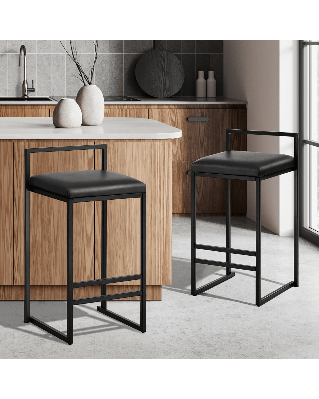 Sold by Kamprad's Oikos 1943Oikiture 2x Bar Stools Kitchen Dining Stool Counter High Chair Leather - Black