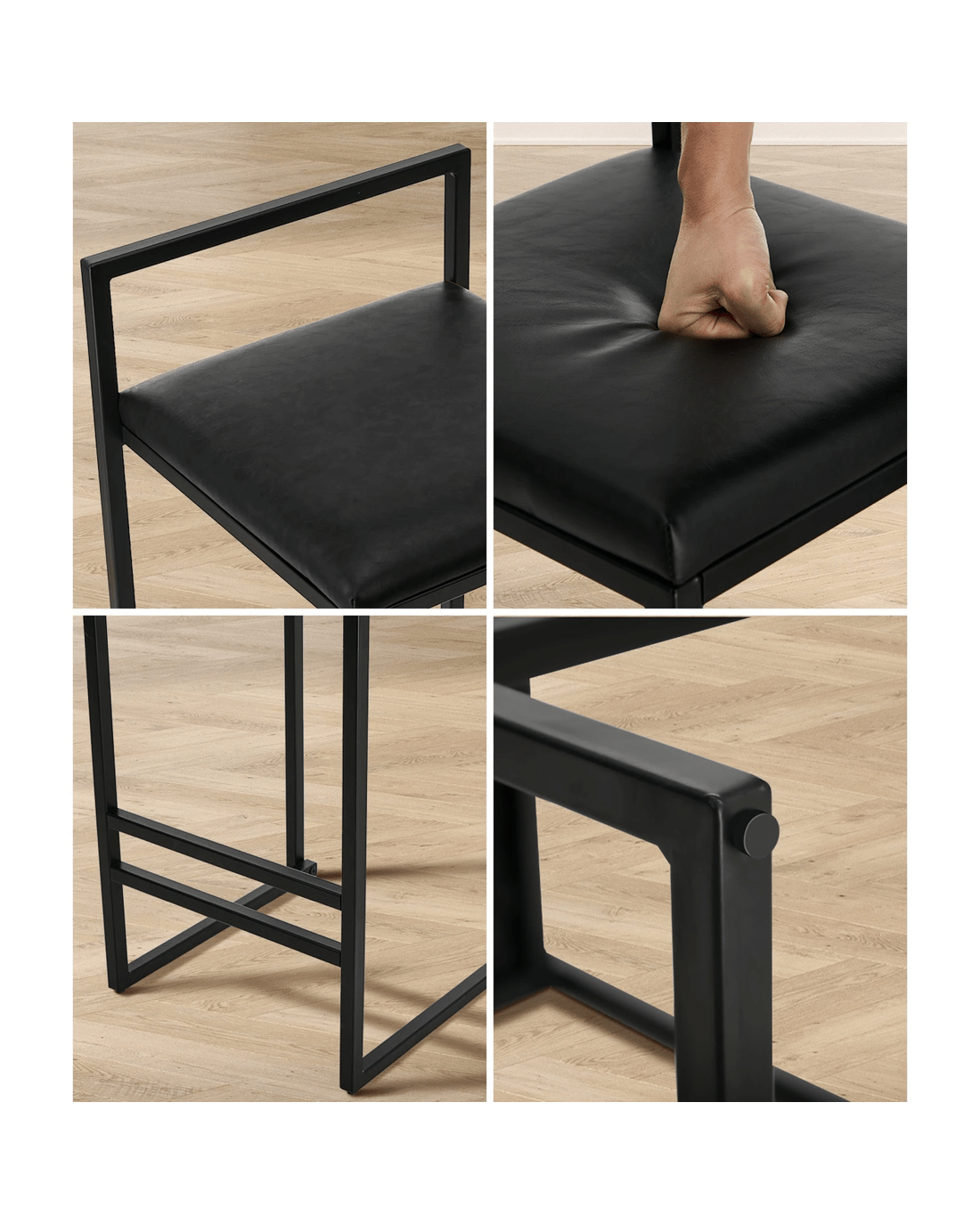 Powder-coated black steel frame and footrest