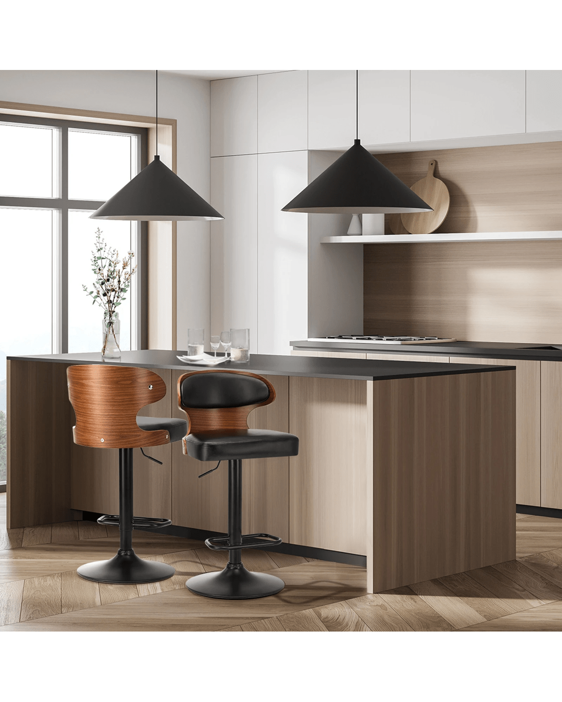 Sold by Kamprad's Oikos 1943Oikiture 2x Bar Stools Kitchen Gas Lift Swivel Chairs Stool Wooden Barstool - Black
