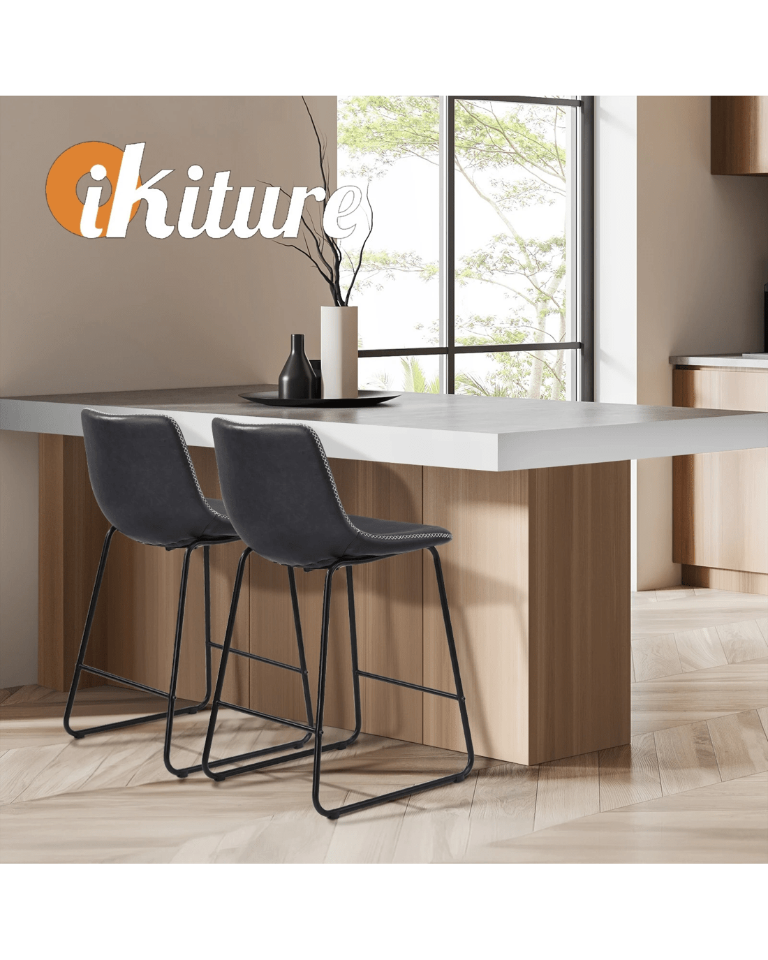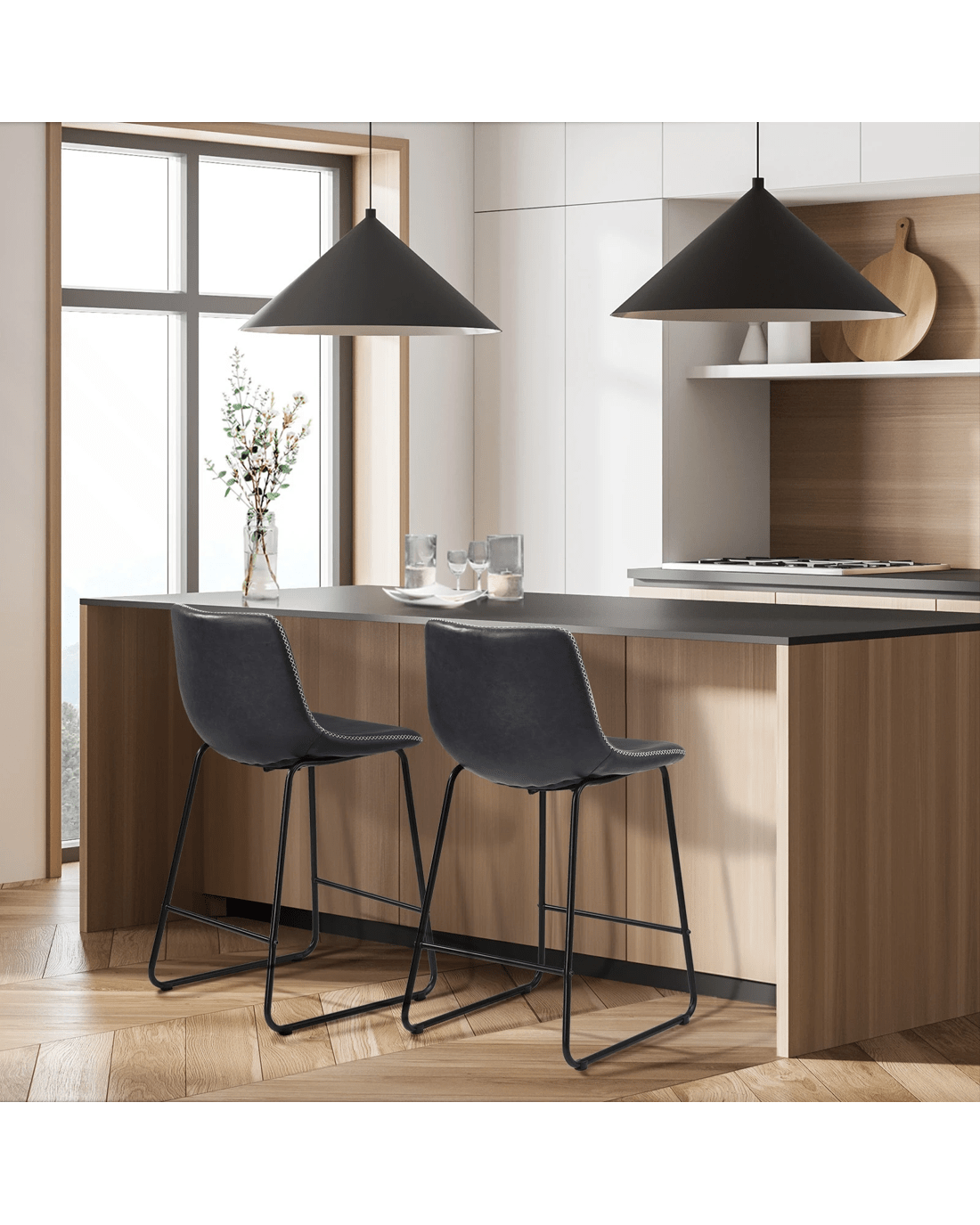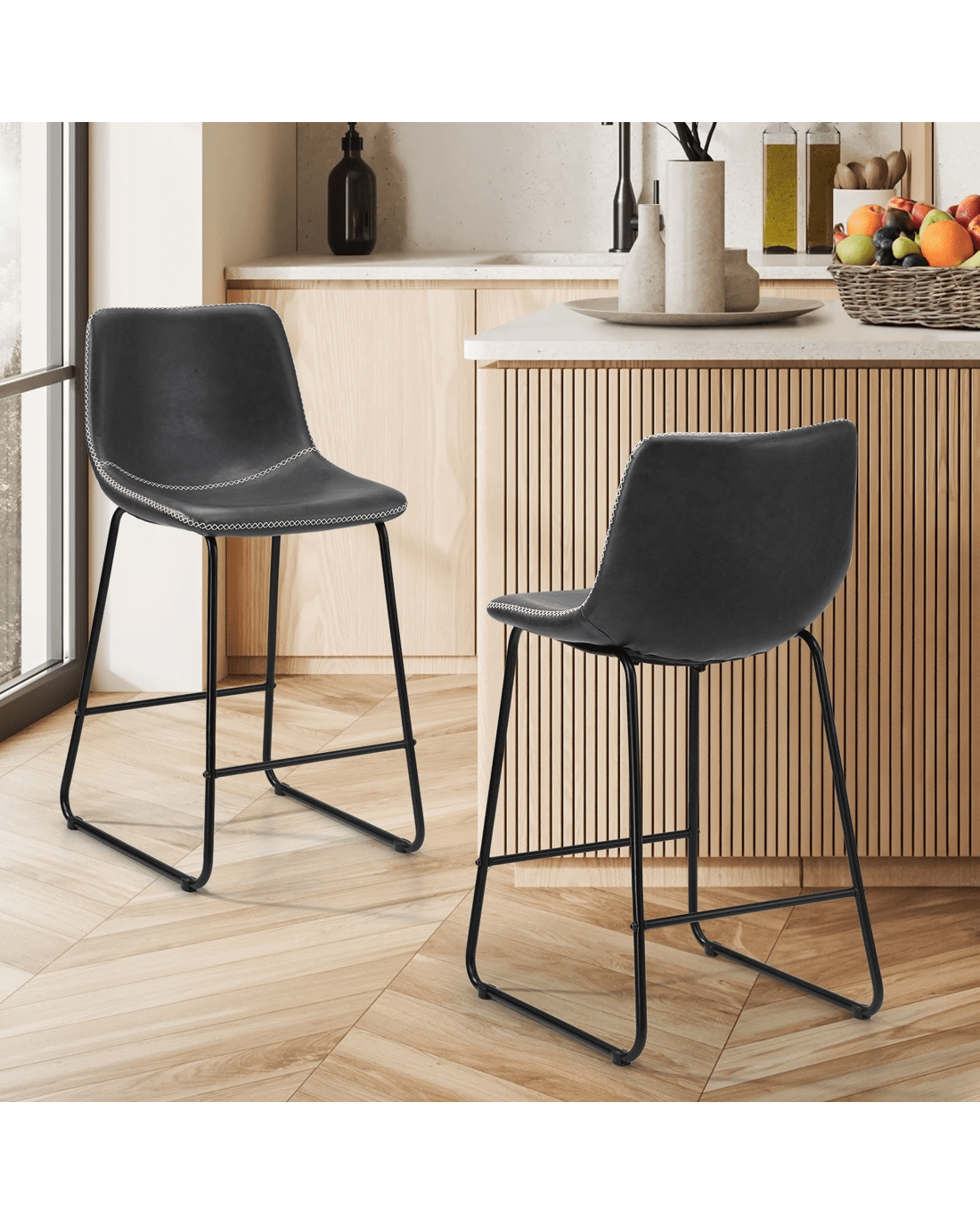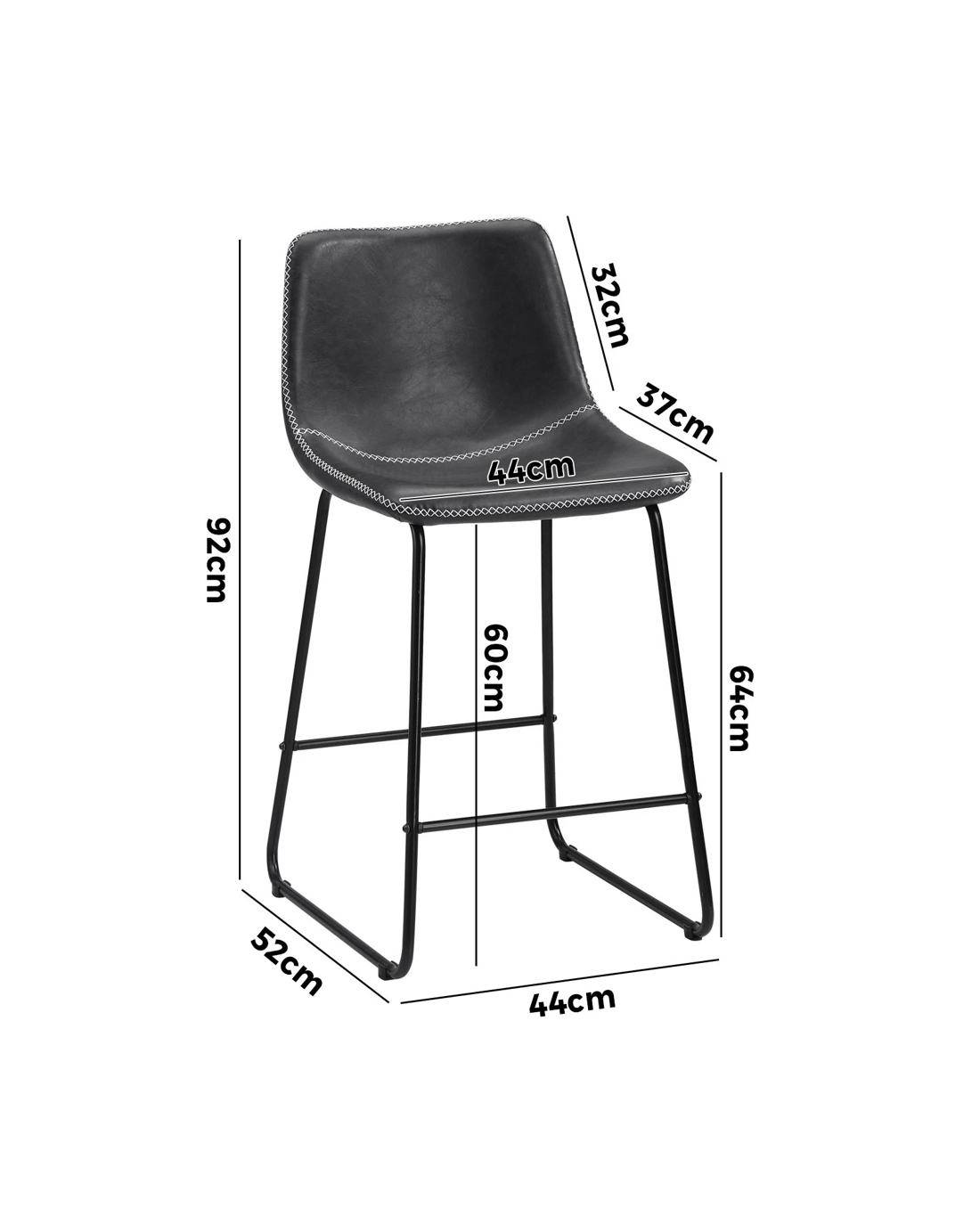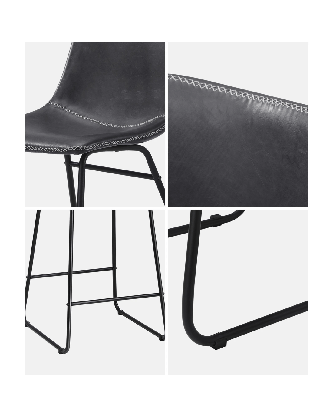 Oikiture 2x Bar Stools Steel Stool Modern Kitchen Dining Furniture Set - Grey