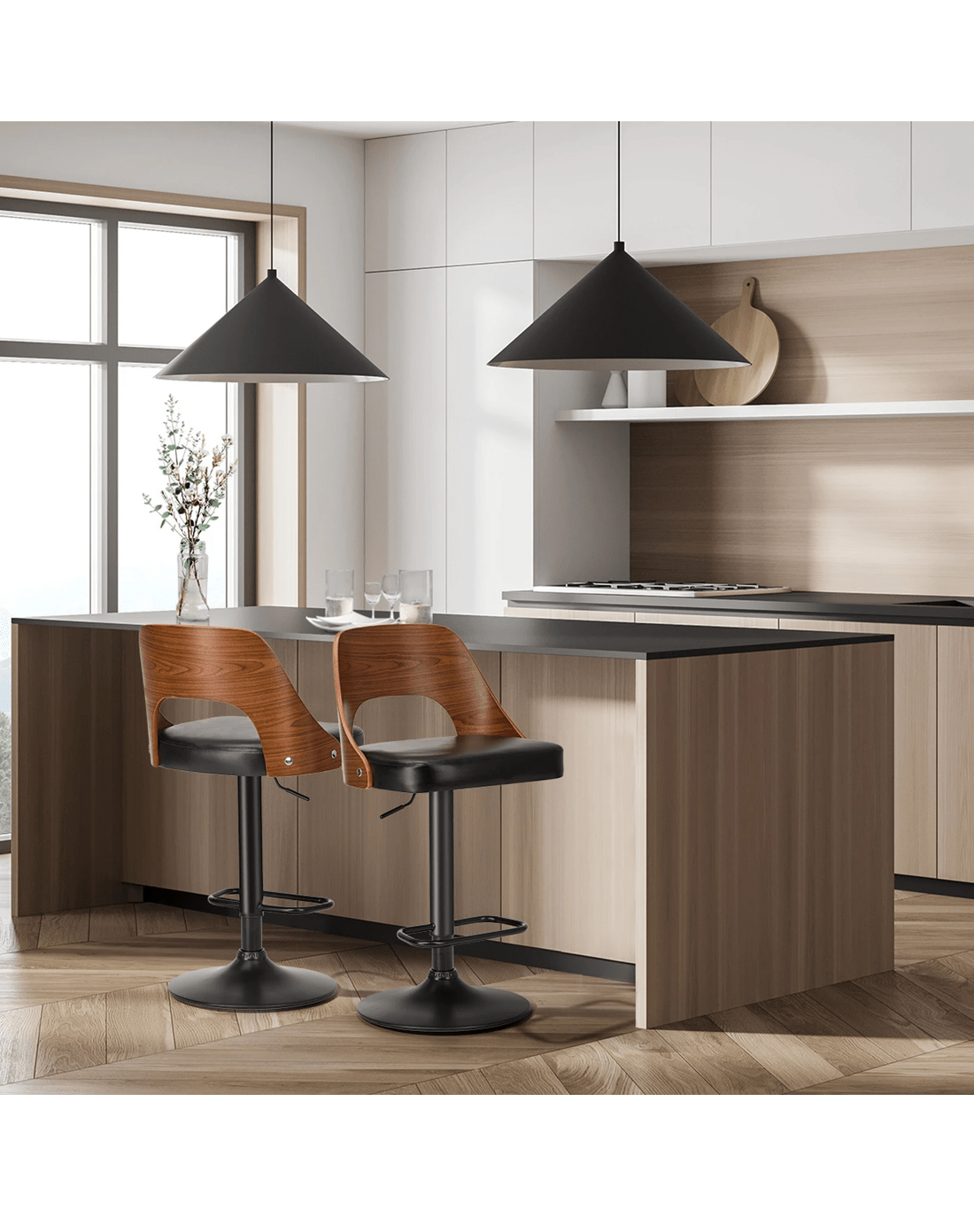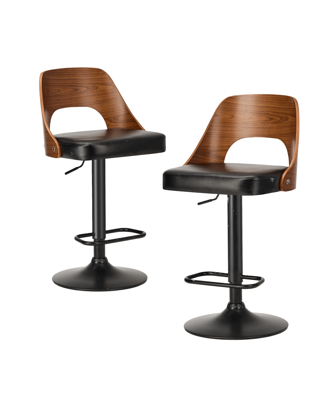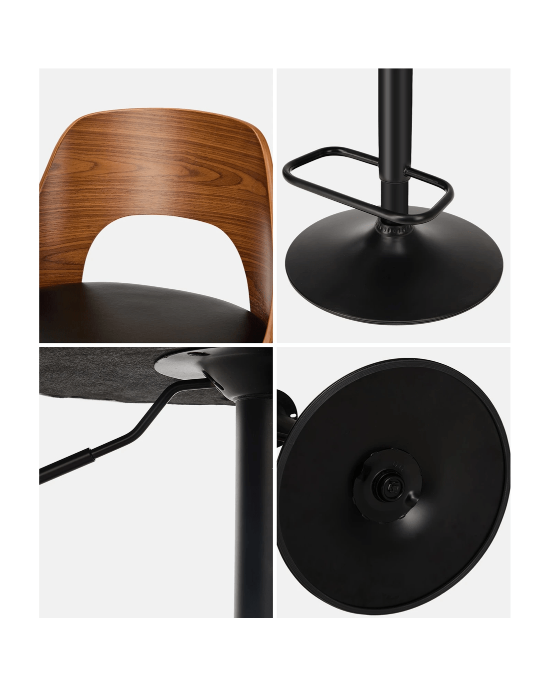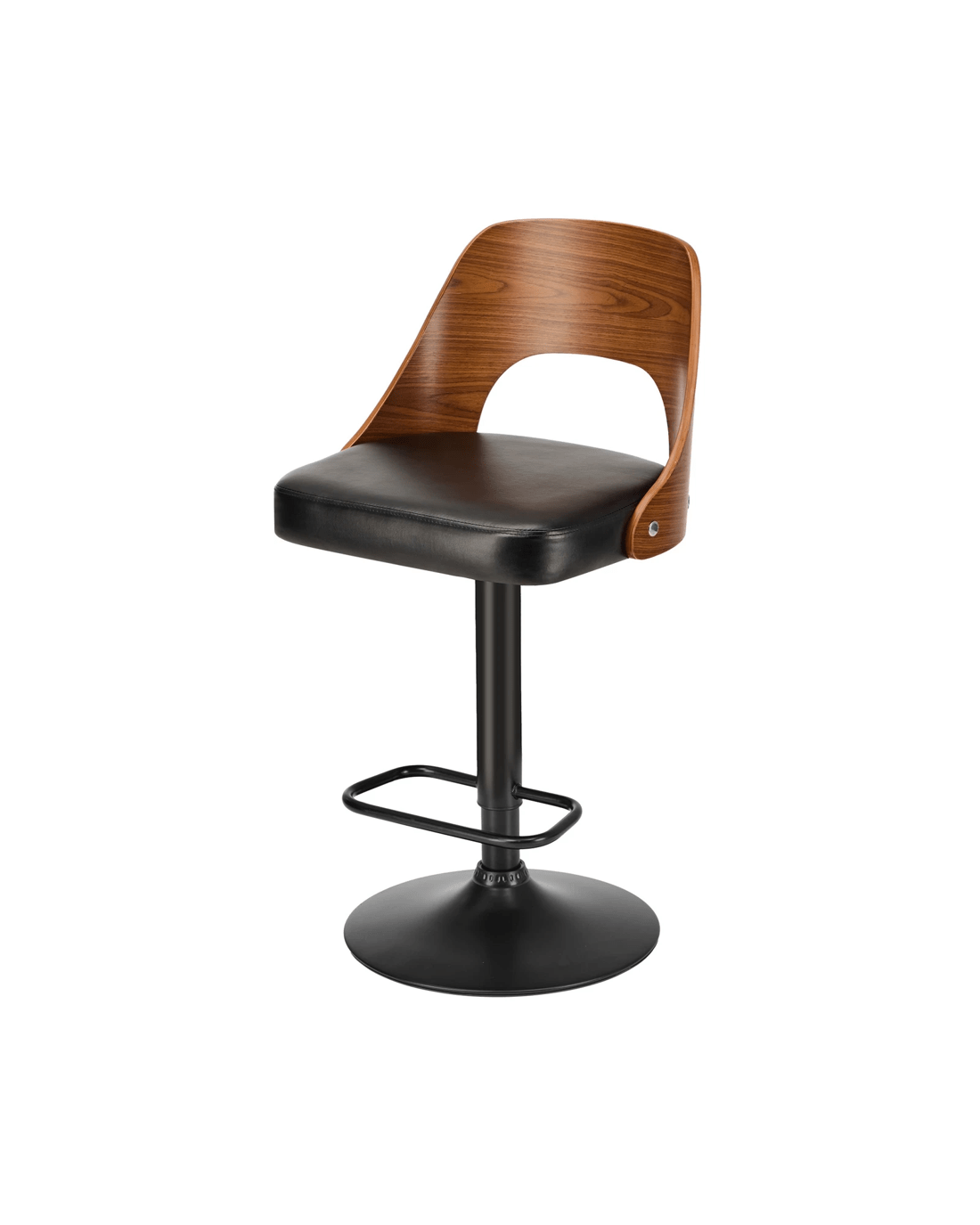 Better still, the PU leather upholstered seat is flawlessly finished and padded with rich comfort. Not least, the contoured and hollow-out bentwood backrest with a beautiful woodgrain texture also provides ample support while you sit back and chill out. Seat height can be easily adjusted to suit various heights with its SGS-certified gas lift and heavy-duty working mechanism, and the seat can be easily rotated to face all directions.