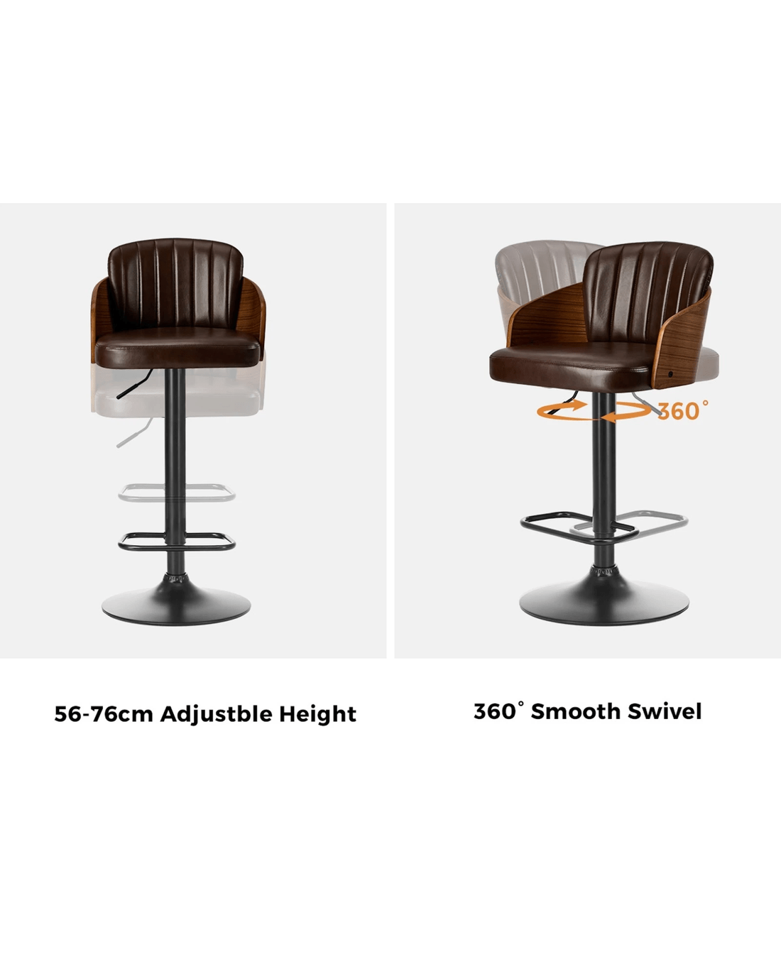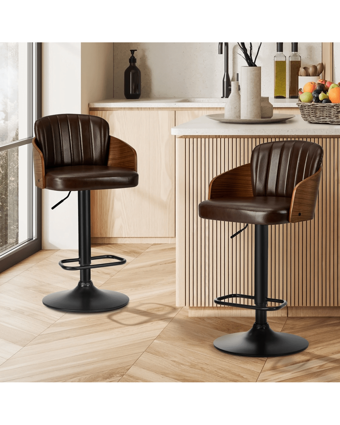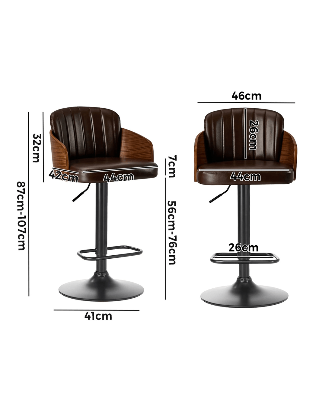 Sold by Kamprad's Oikos 1943Oikiture 2x Bar Stools Vintage Leather Gas Lift - Brown