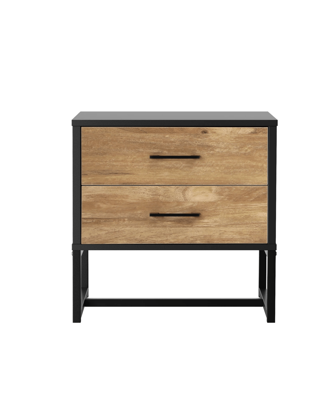 Constructed with 12mm particle board and metal, the bedside table maintains a good sense of structure and durability. Plus, the sturdy and interconnected black powder-coated one-piece metal leg frames are strong to the task and make for easy cleaning underneath the chest of drawers. The attention to detail is meticulous, evidenced by the fine workmanship from top to bottom.