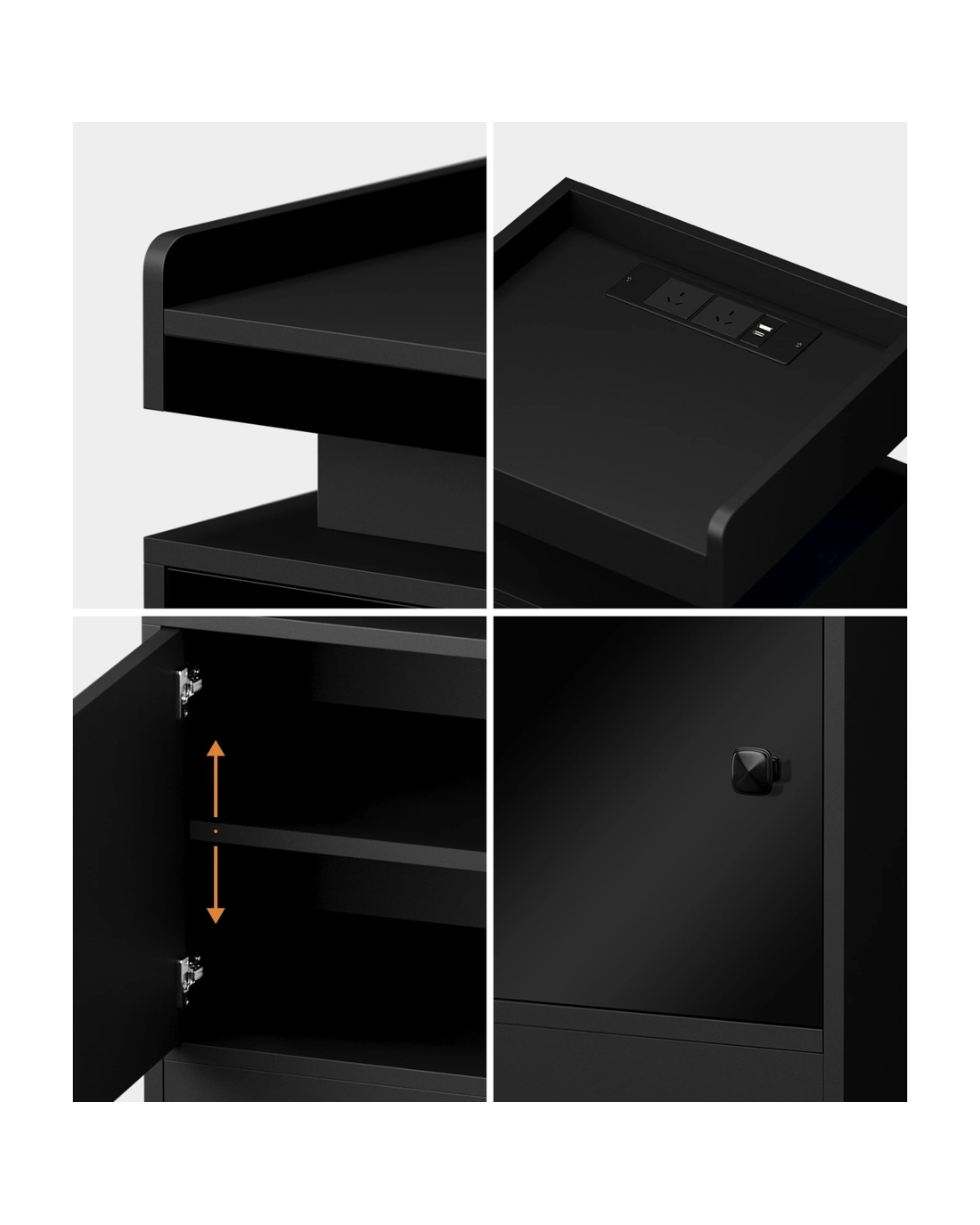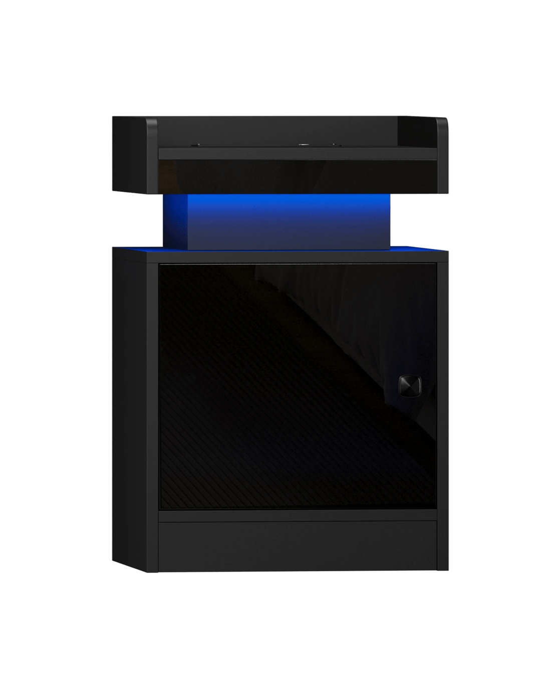 But what is really astounding about this bedside table is the customisable LED lighting with 16 colours and 4 flashing modes to create a spectacular lightshow or ambient lighting for perfect rest and relaxation. The bedside table can even be a showcase for your treasured mementos or collectibles with display lighting. Everything is easily set with a handy remote control at your fingertips. Plus, two useful AC power outlets and a USB-A and a USB-C port are also built-in for convenient charging or powering of your favourite media devices.