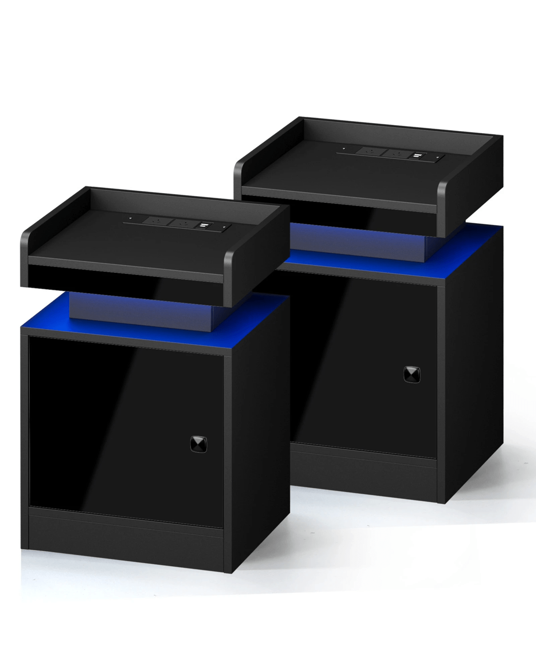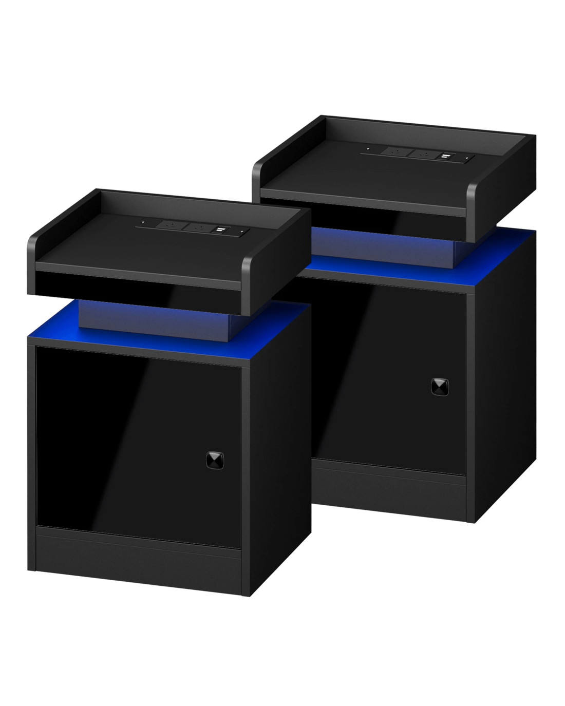 Sold by Kamprad's Oikos 1943Oikiture 2x Bedside Table LED Nightstand USB Charging Station Side Table - Black