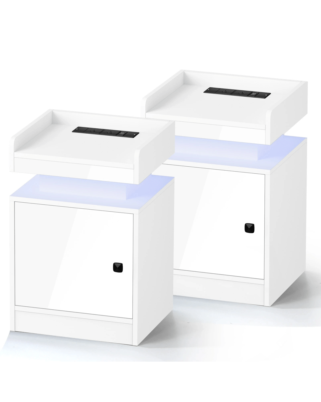 Sold by Kamprad's Oikos 1943Oikiture 2x Bedside Table LED Nightstand USB Charging Station Side Table - White