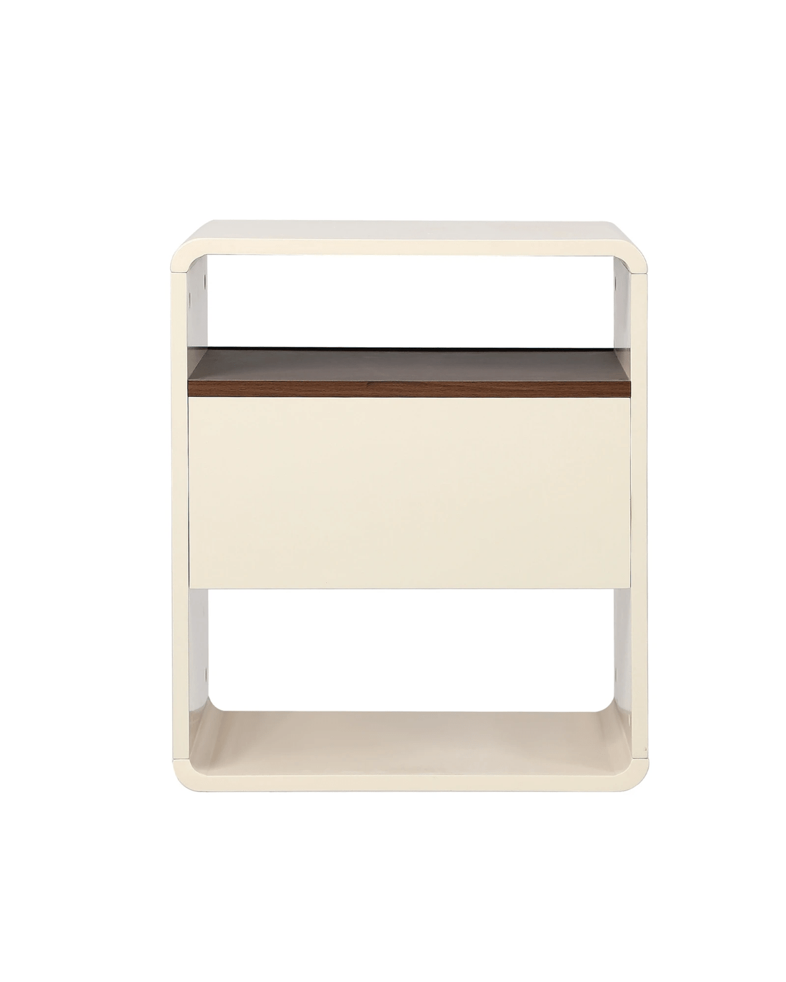 In terms of style, the bedside table has all the vibes of a retro-modern piece that stands out from the ordinary. With character and presence to add an eclectic touch to your decor. The central single drawer, with an attractive woodgrain-like front, is blessed with ample space whilst the handle-free design makes for easy opening and closing. The top and bottom open shelves further add more storage opportunities for your bedside essentials.