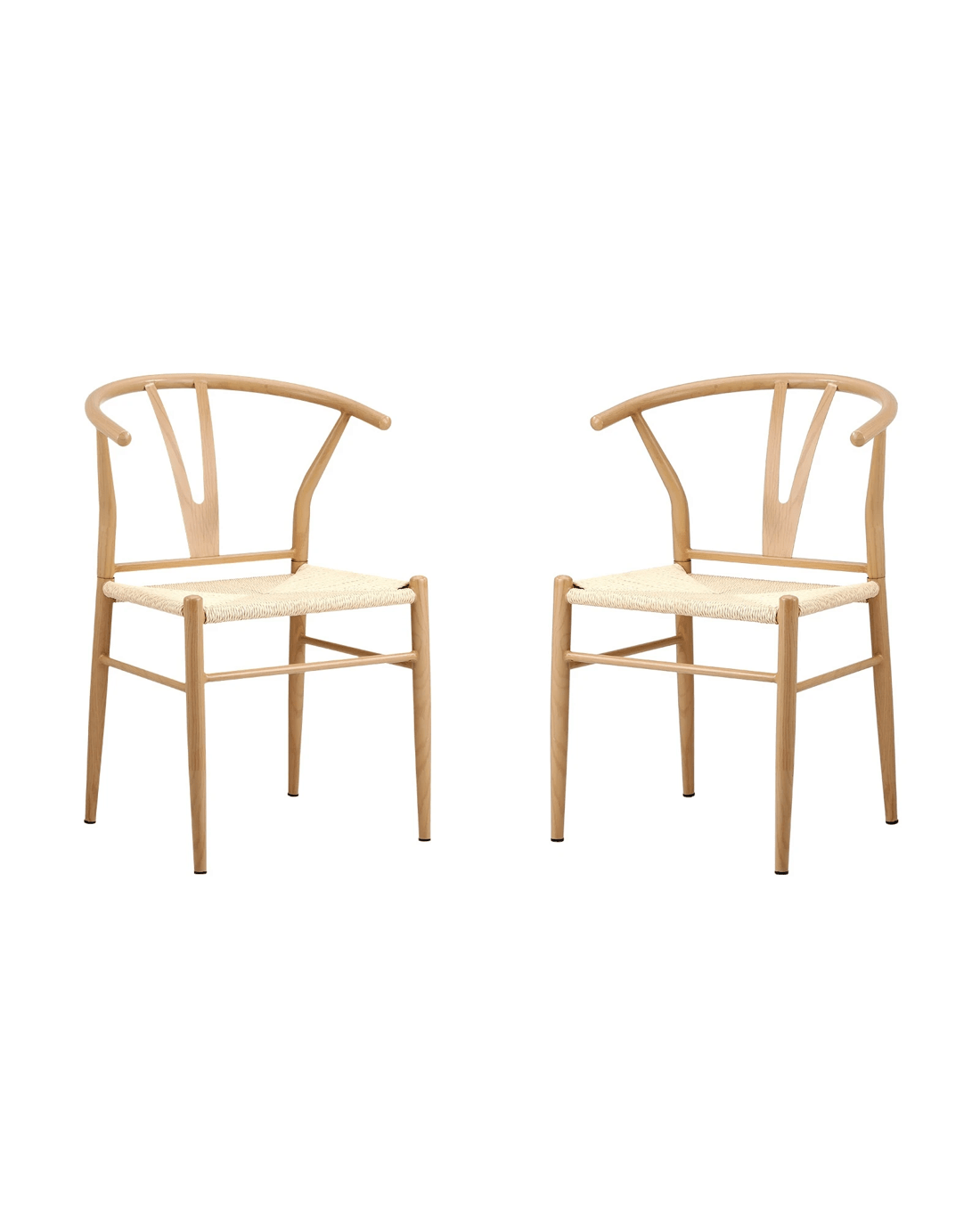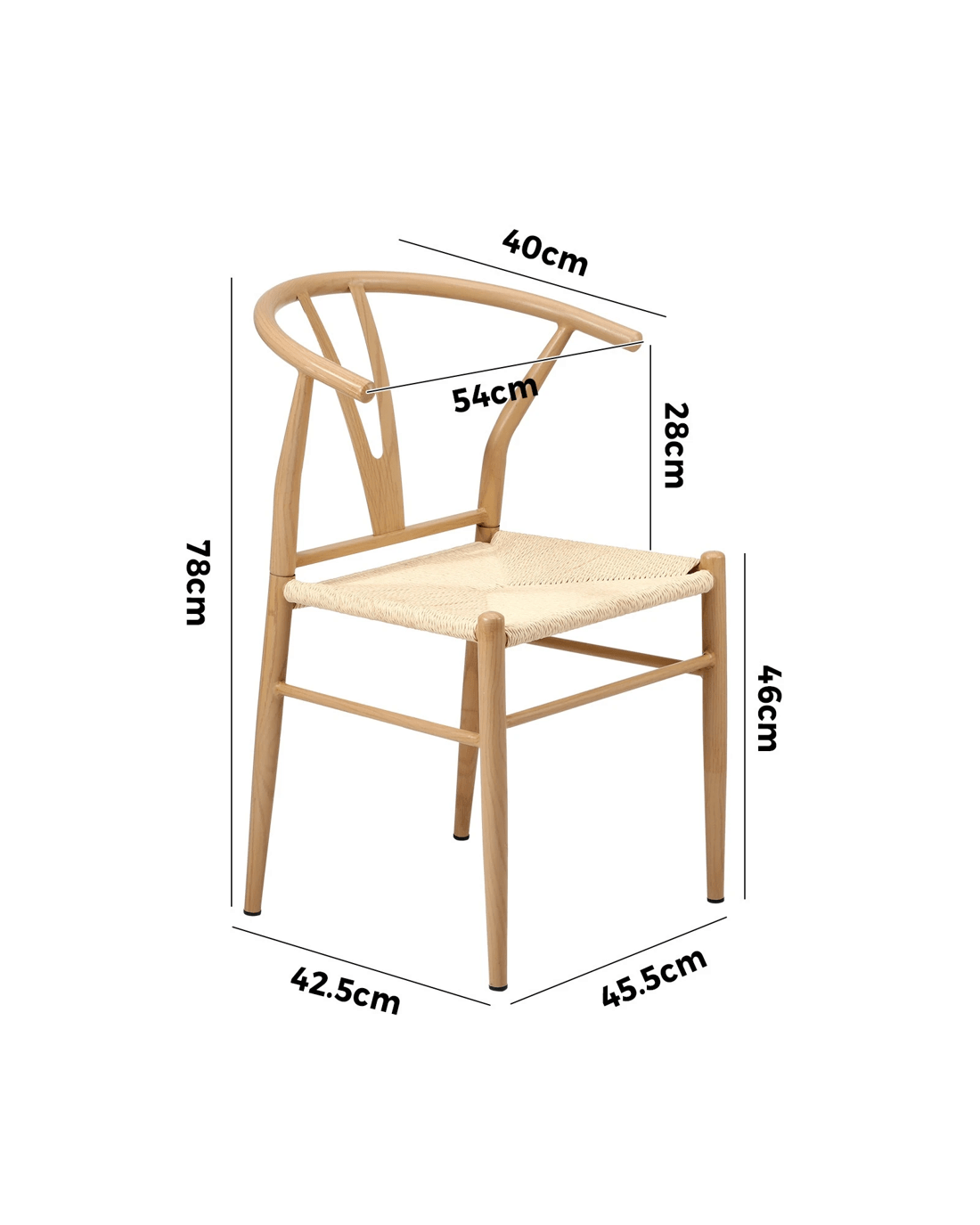 Oikiture 2x Dining Chair Metal Hans Wegner Chair Wishbone Cafe Lounge - Beige